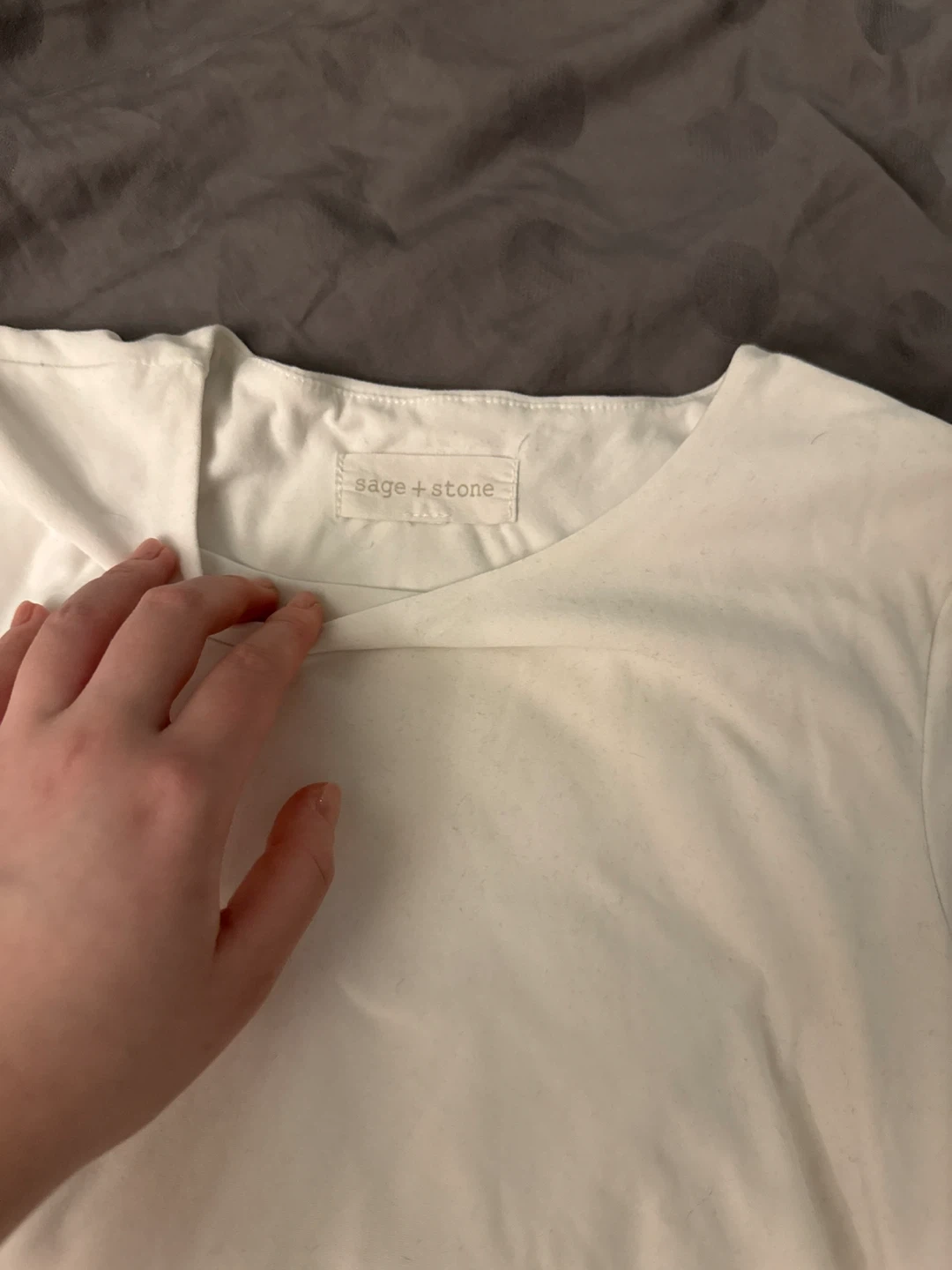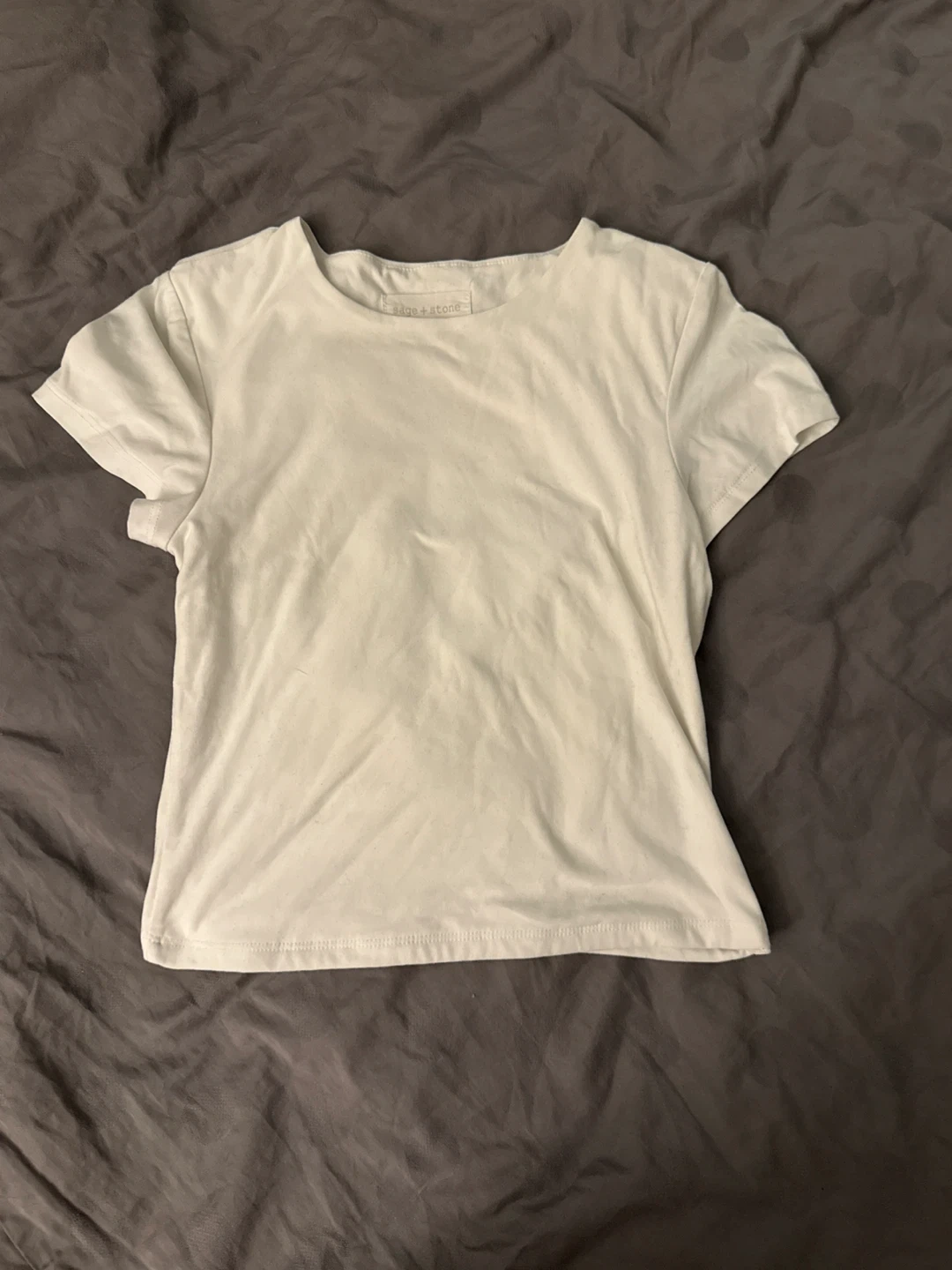 A classic white short-sleeve t-shirt from Sage + Stone. It's made with a soft, comfortable material. This tee is great for everyday wear.