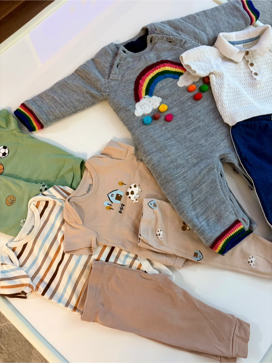Selling a bundle of baby clothes in various sizes and styles. The bundle includes: