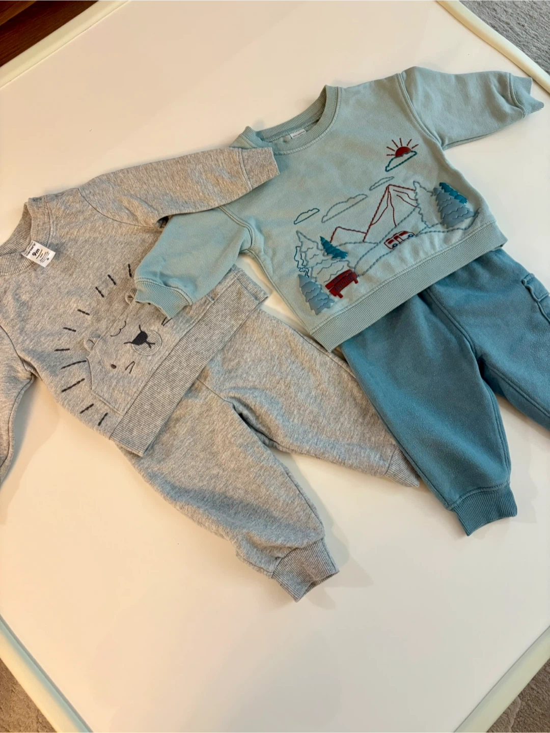 - 2 Carters sets - Bottoms with full sleeved tops. The grey one has never been worn.