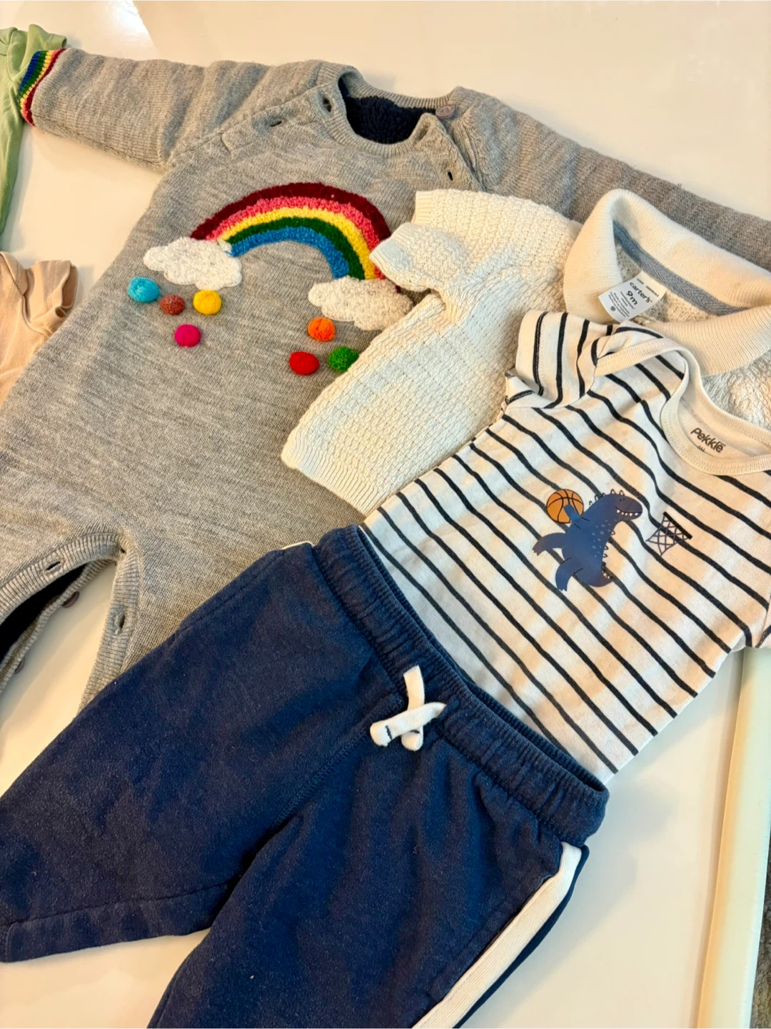 Selling a bundle of baby clothes in various sizes and styles. The bundle includes: