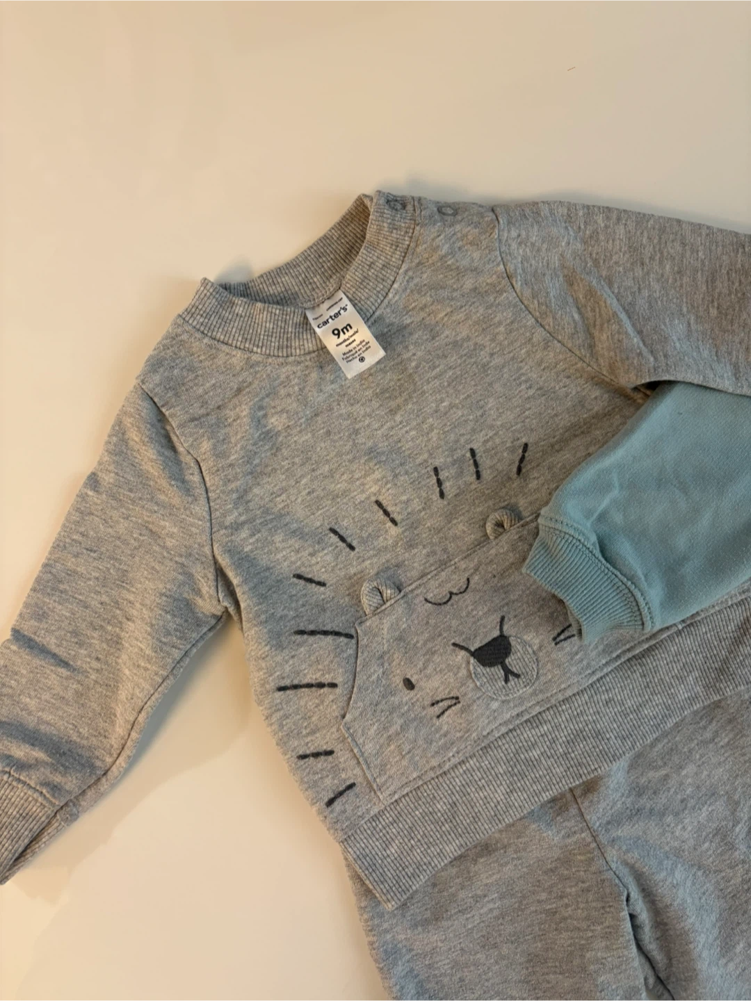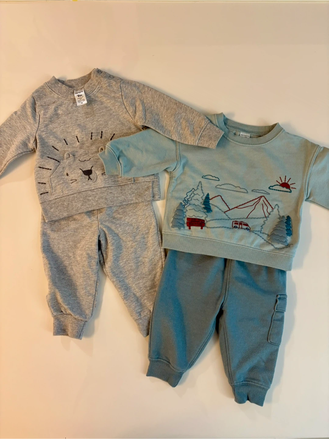- 2 Carters sets - Bottoms with full sleeved tops. The grey one has never been worn.
