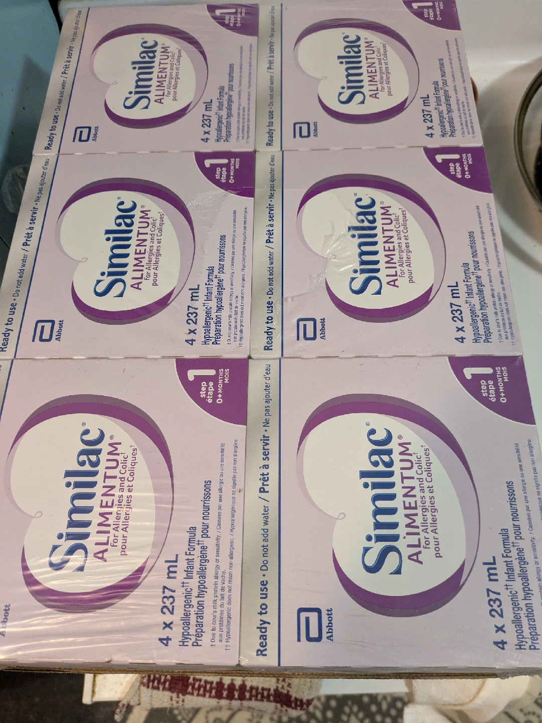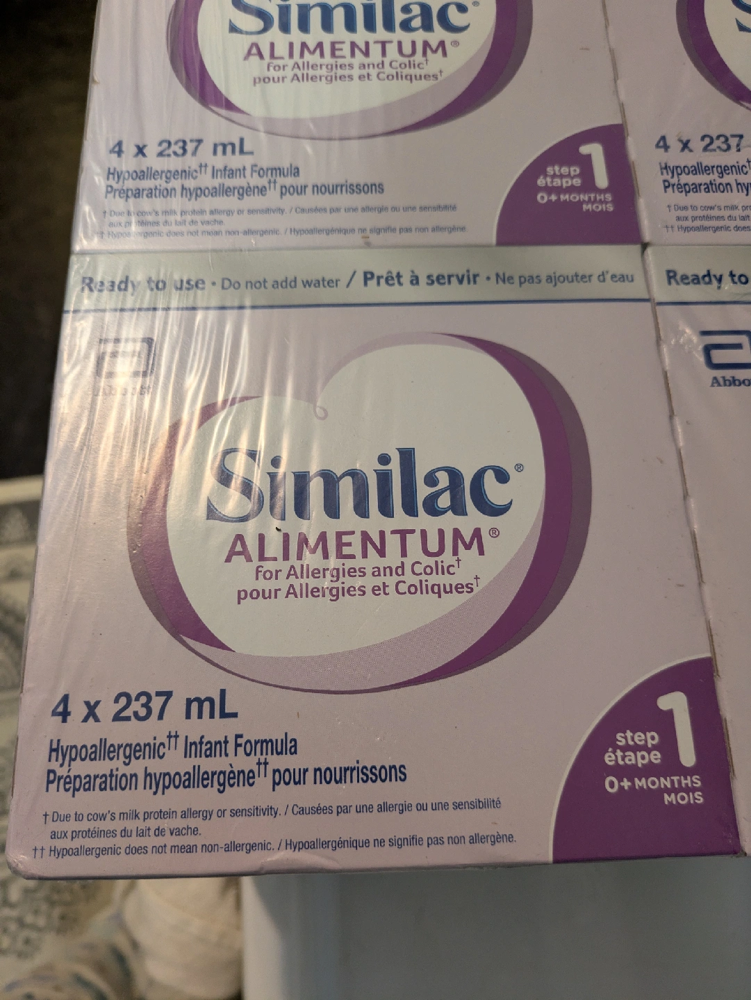 Selling a new case of Similac Alimentum infant formula. Each pack contains 24 bottles, 237mL each.