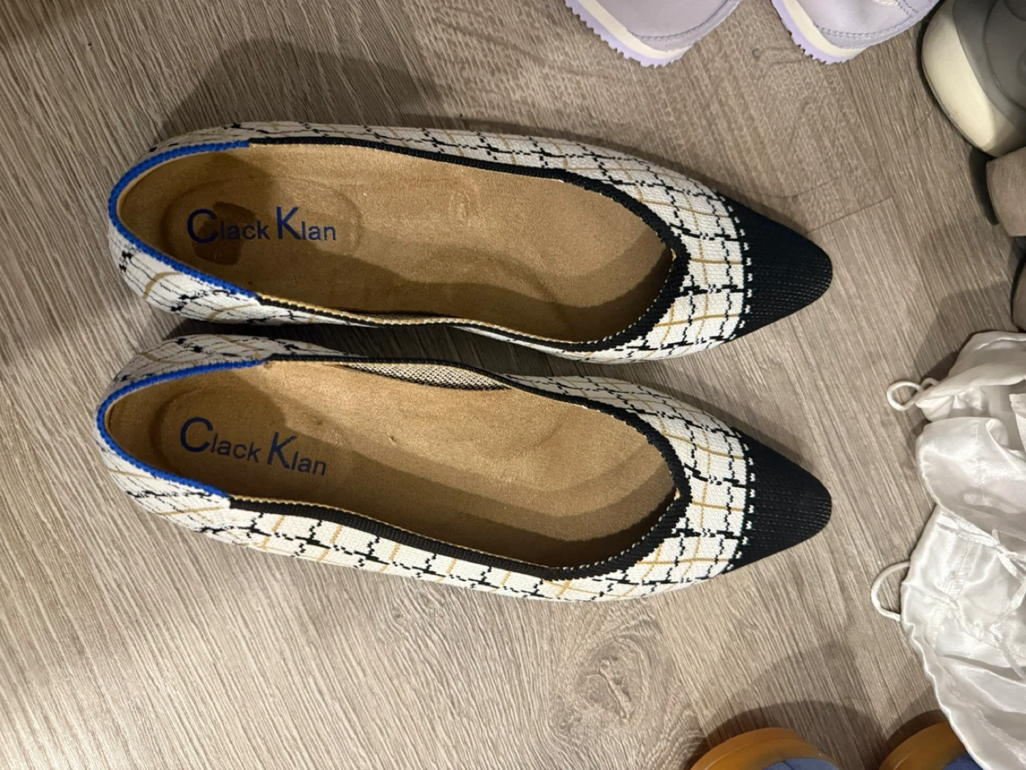 Selling a pair of Clack Klan women's flats in size 40. Only tried on indoor, too big for me. there’s a darkened spot at the insole because I tried to put a self-adhesive insole to make it smaller..didn’t work. The shoes have a unique checkered design with a black toe cap. Super comfy (same as vivaia) and classic for office or casual day out. I am a size 7.5 in most brands (Tory, RV, Sam Edelman, JC,etc) 8 in Steve Madden, this pair fits US 8.5 to 9.