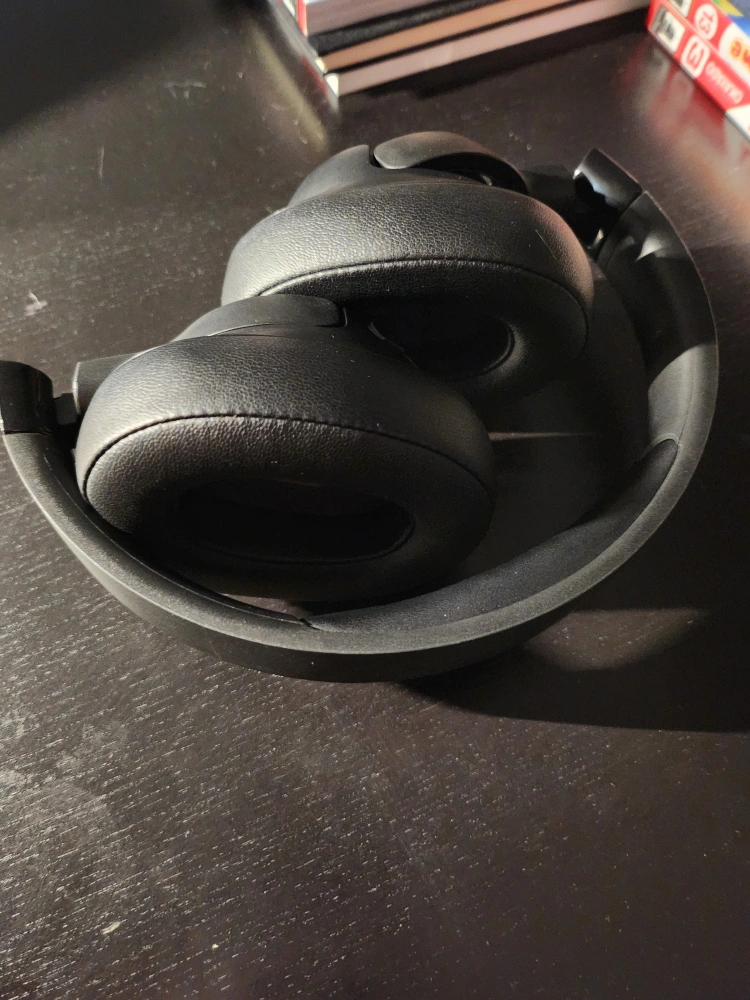 Over-ear headphones. Wireless. Foldable design. Black colour. Good for listening to music or podcasts.