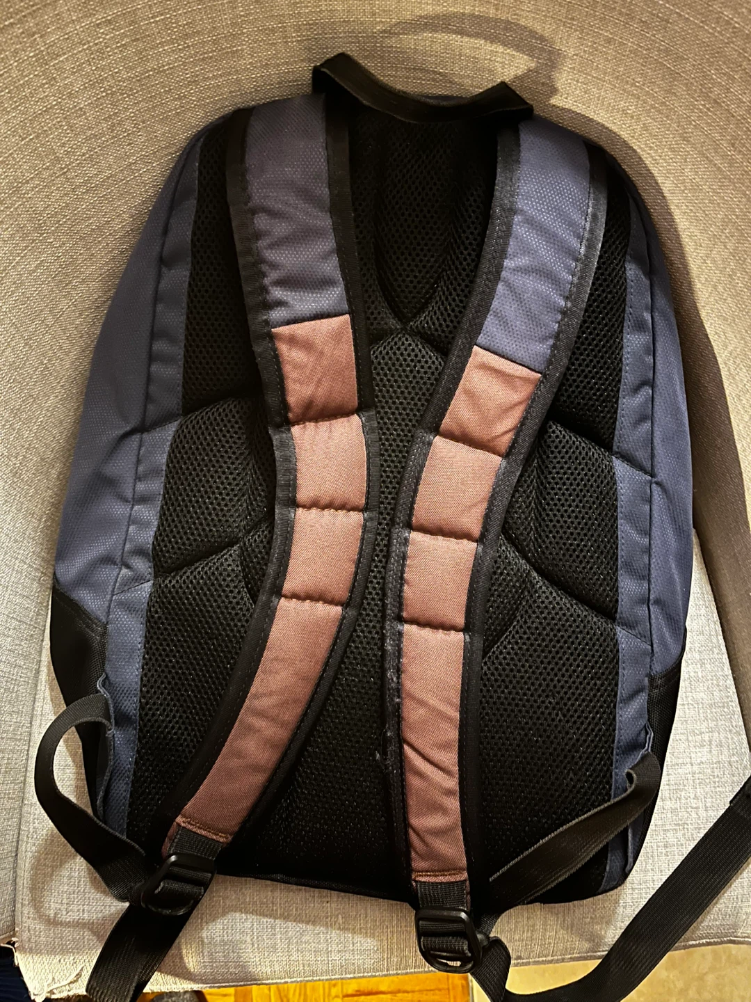 It has multiple zippered compartments and padded shoulder straps for comfort.
