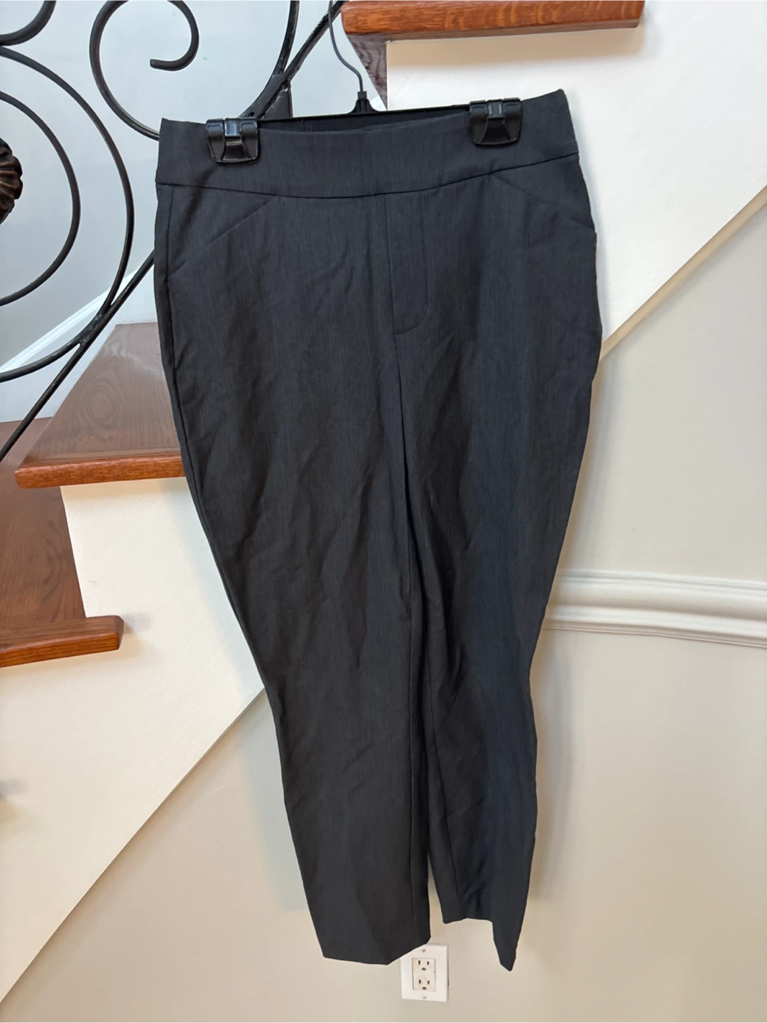 Denver Hayes women’s grey dress pants. They feature a classic cut with two back faux pockets.