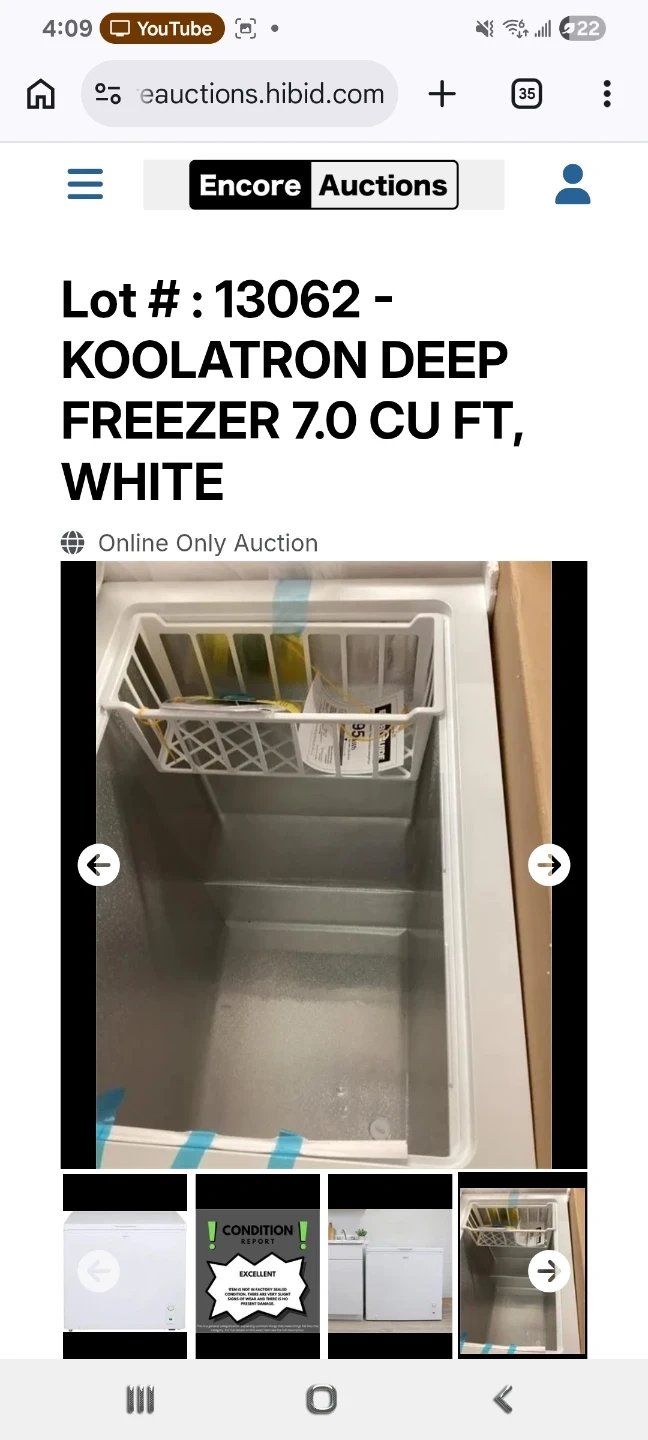 This is a white Koolatron deep freezer with a 7.0 cu ft capacity. It includes a freezer basket. It appears to be new and comes with its original box and packaging.