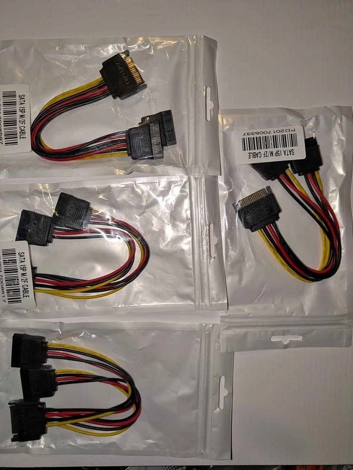 4-SATA 15p M/2F cable each or 4 for 1 Dual SATA to 6p/8p PCI-E 1 2-pack 4 pin PWM 3 fan splitter 12" . 2 Molex to 6p PCI-E adapters 1 PWM 1 to 2 fan extension cable