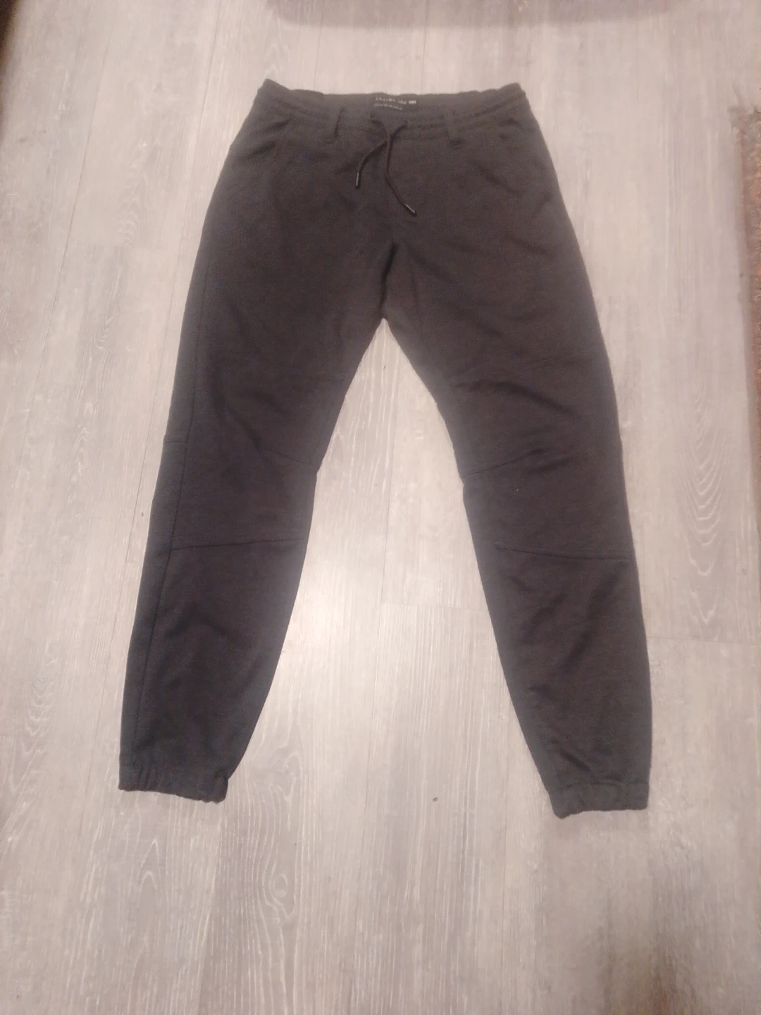 These black jogger pants feature a drawstring waist and cuffed ankles. They're made from a soft material for comfort. Great for casual wear!