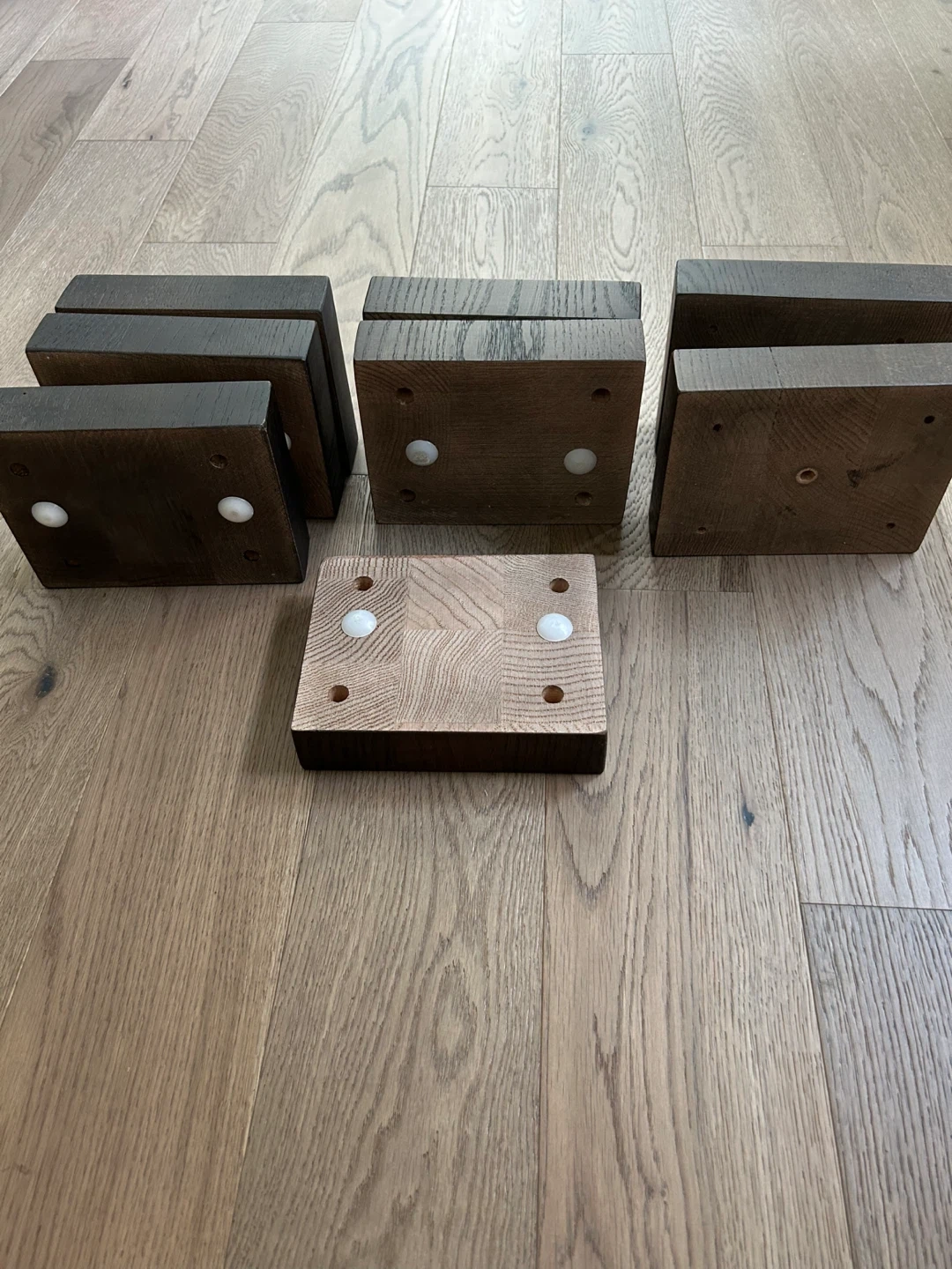 Stet of 8 oak furniture risers / wood blocks.