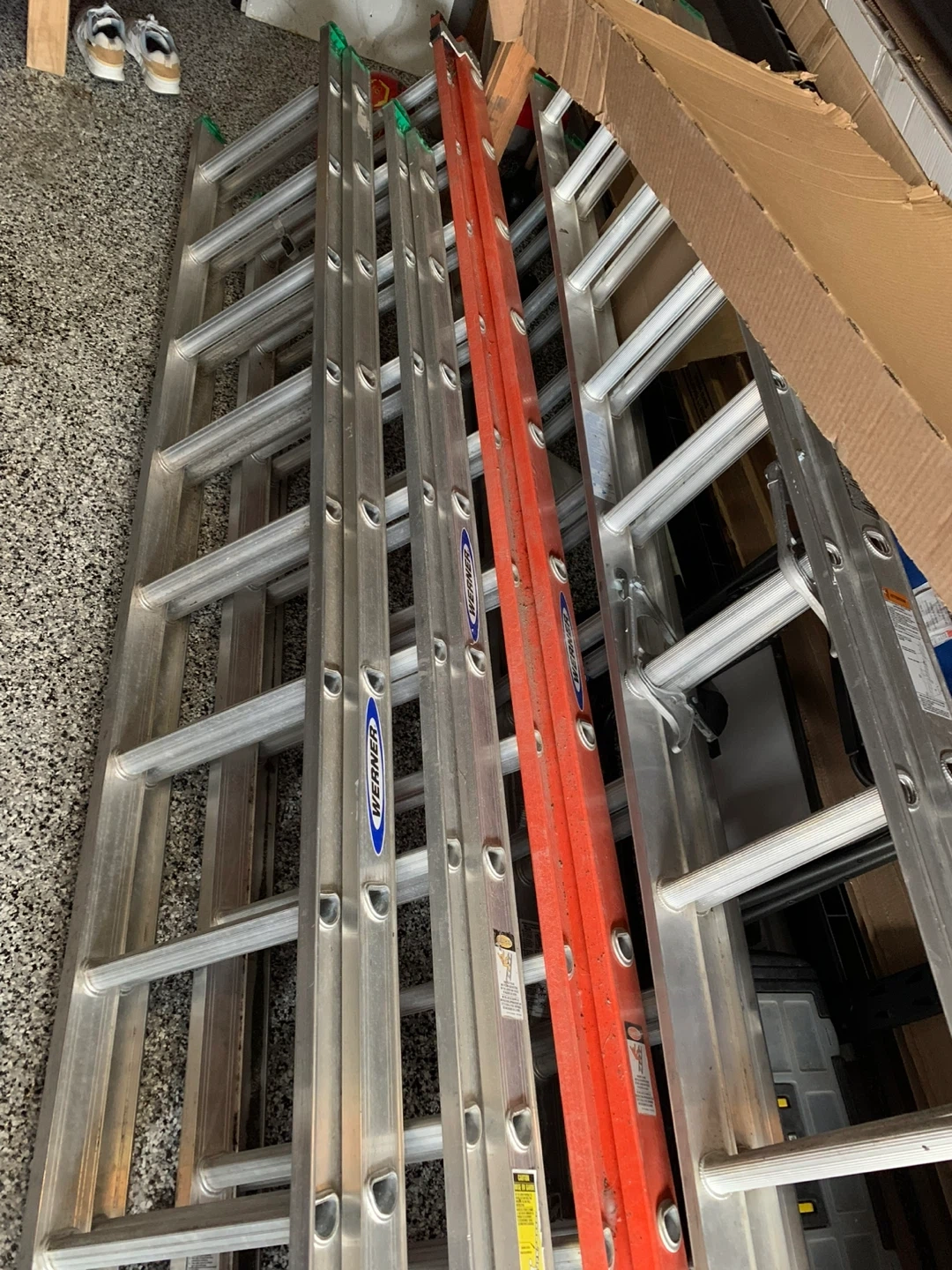 These Werner aluminum extension ladder. It's a sturdy ladder for various tasks. It's ideal for reaching high places. 5 ladders - prices below.