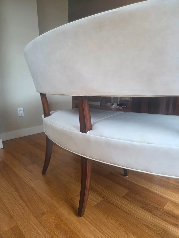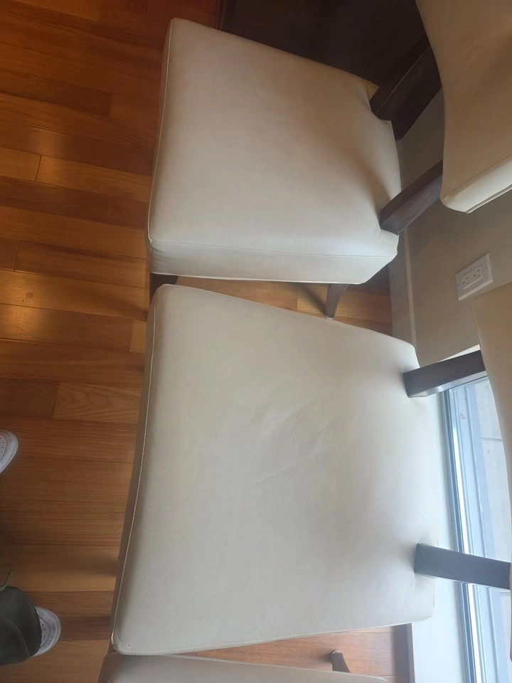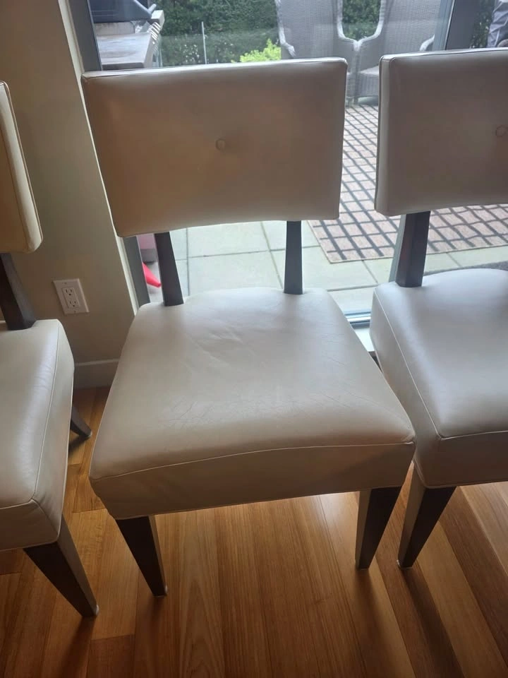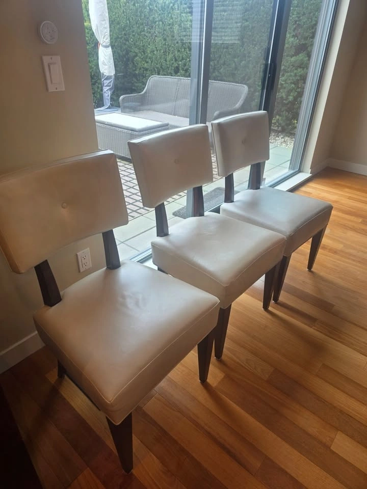 3 matching white leather dining chairs