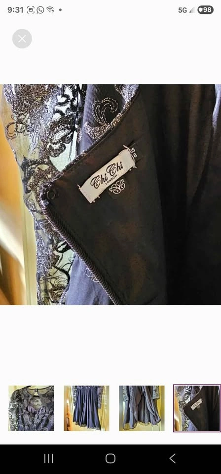 Size 8 Chi Chi London black silver rose embroidered goth dress