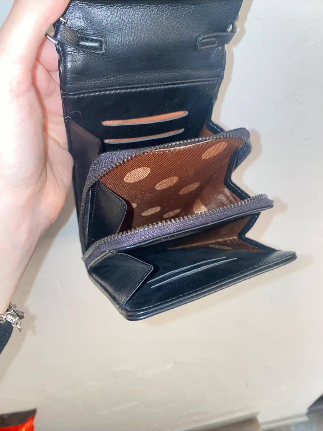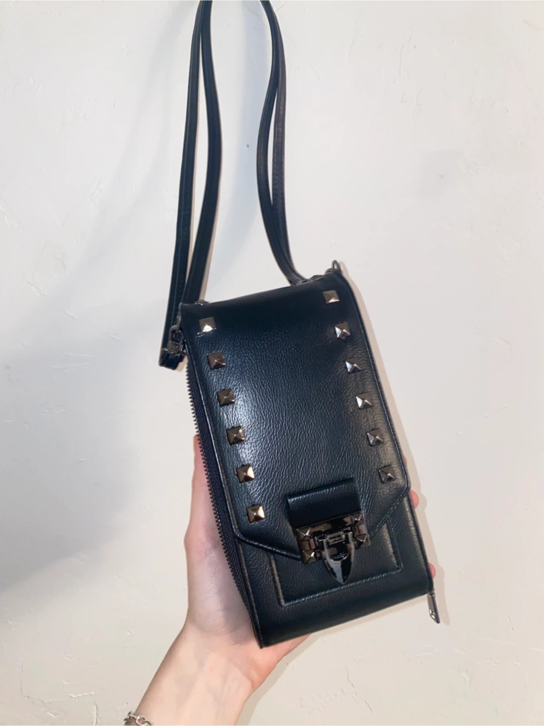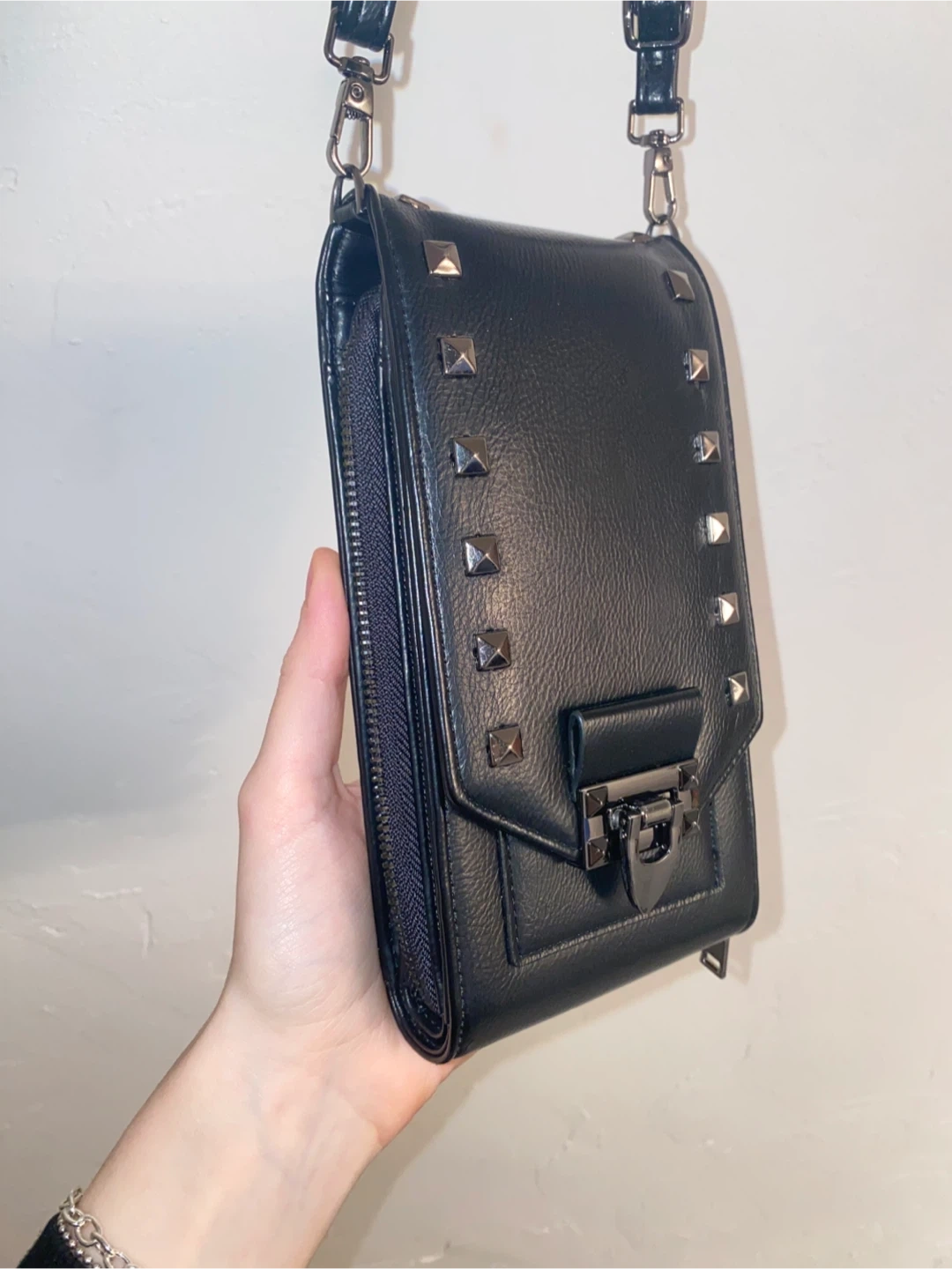 Black studded wallet with crossbody strap