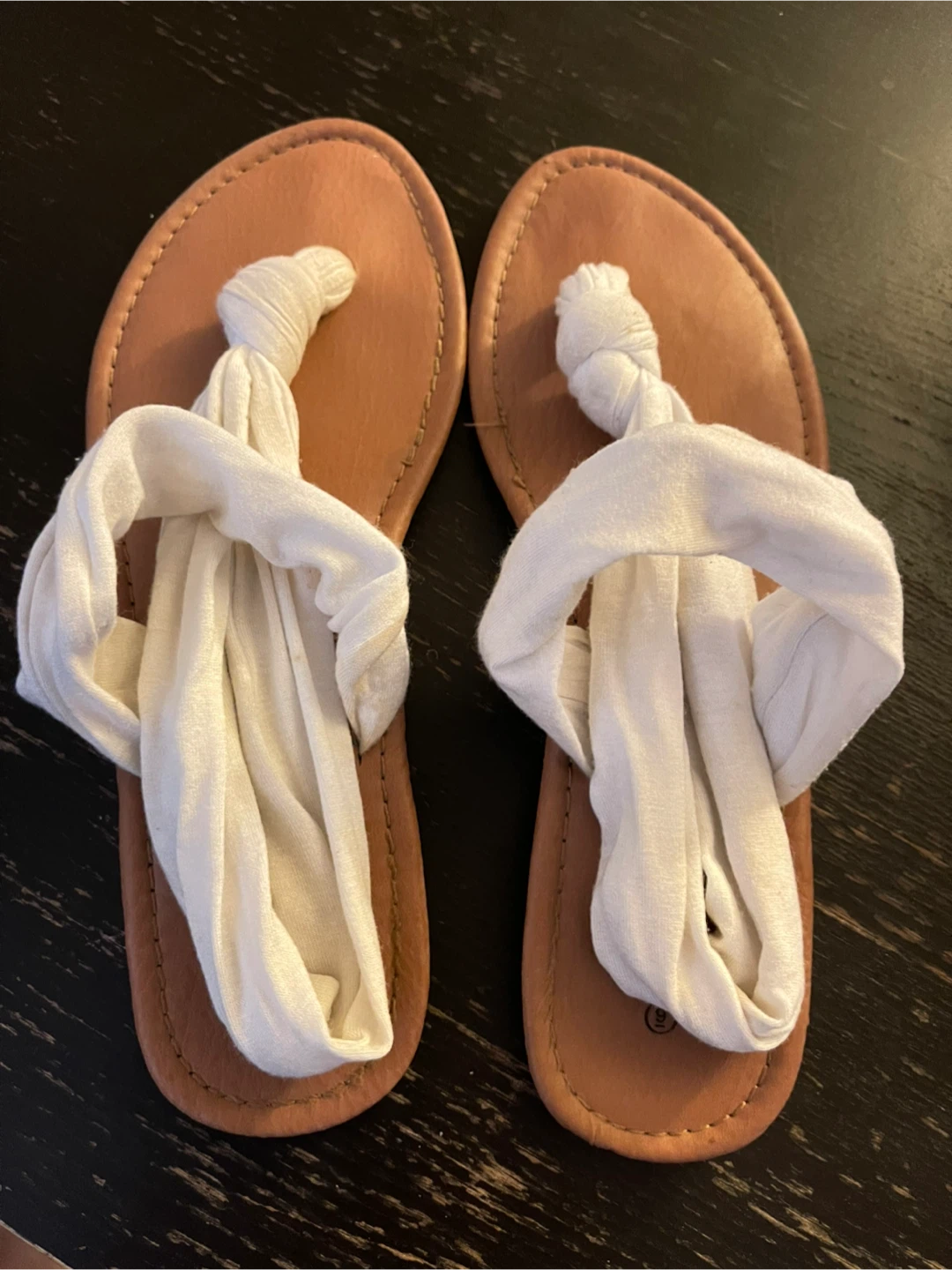 These are a pair of Ardene comfort foam sandals in a size 9. They feature a white fabric detail on the top