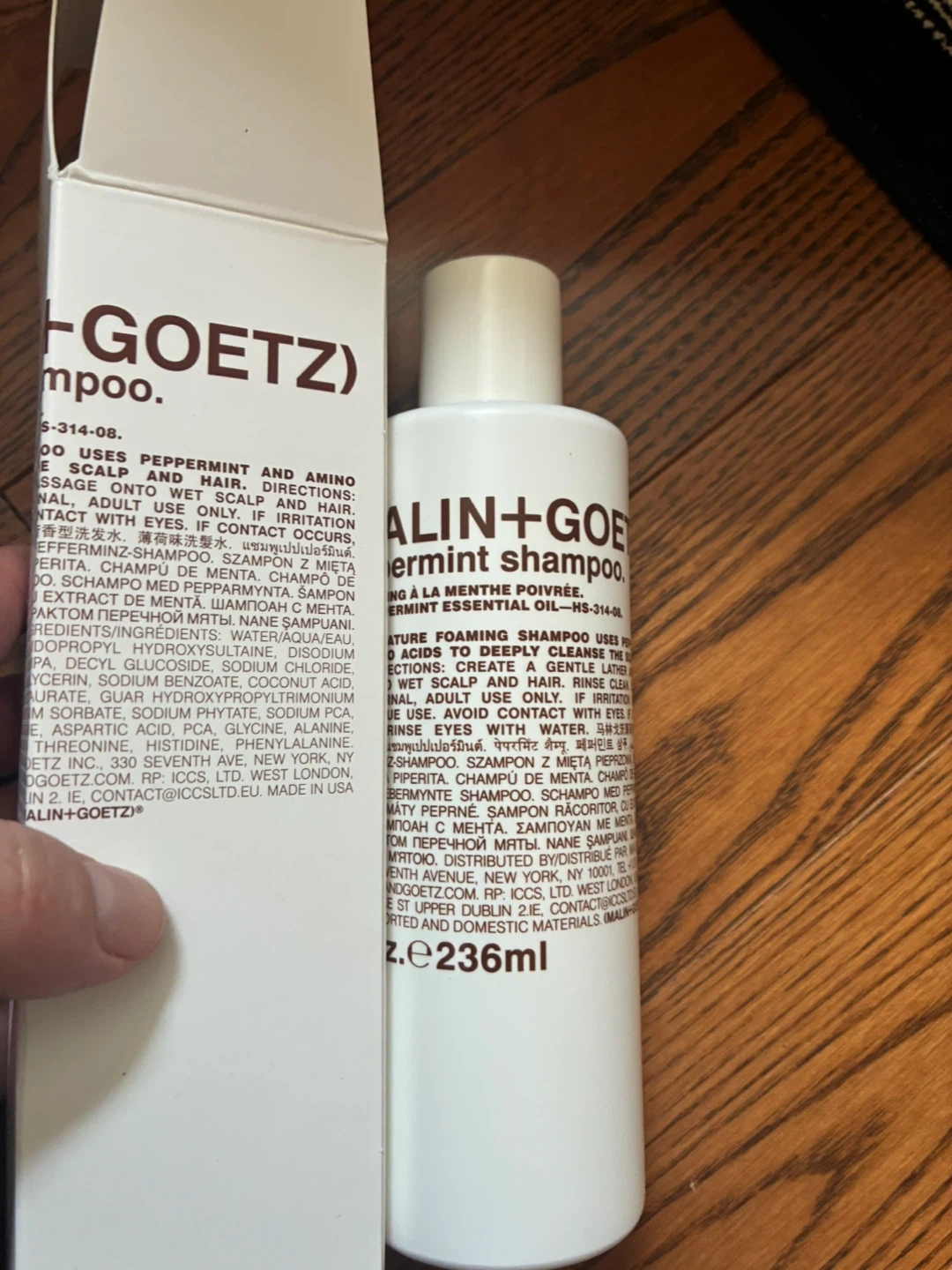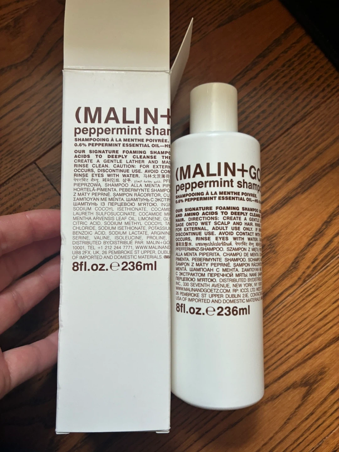 Malin+Goetz signature foaming shampoo with peppermint and amino acids. Gently cleanses scalp and hair. 8 fl oz bottle.