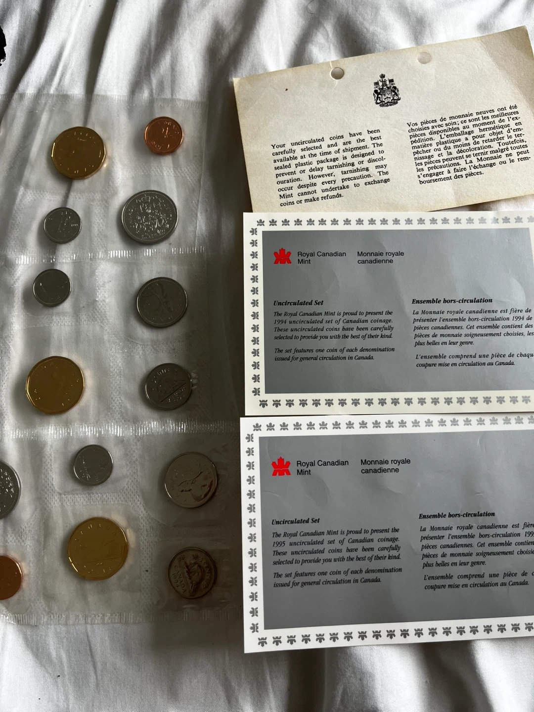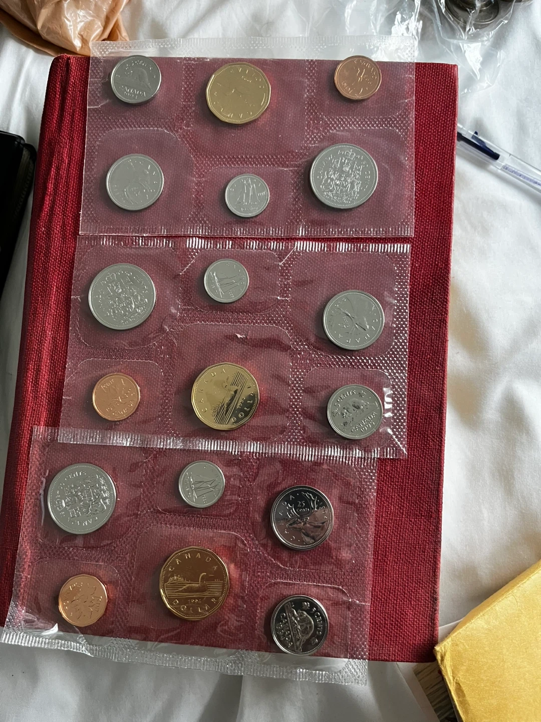 1993-1994-1995 Each 20 dollar best offer accepted Collection of Canadian coins sealed in protective plastic. Includes various denominations and years. Great for collectors!