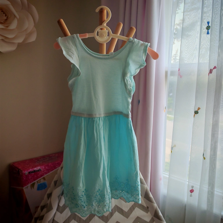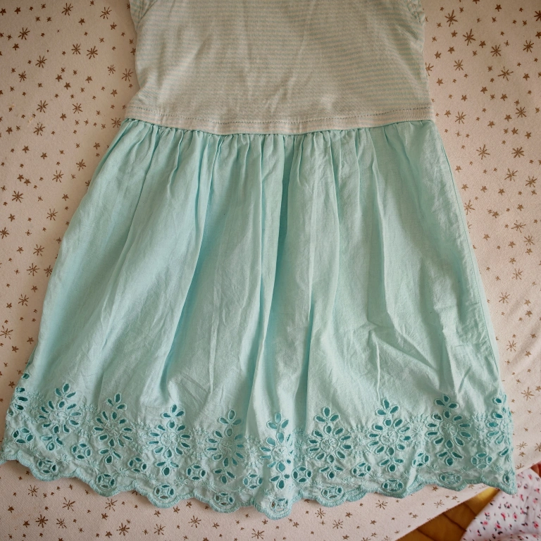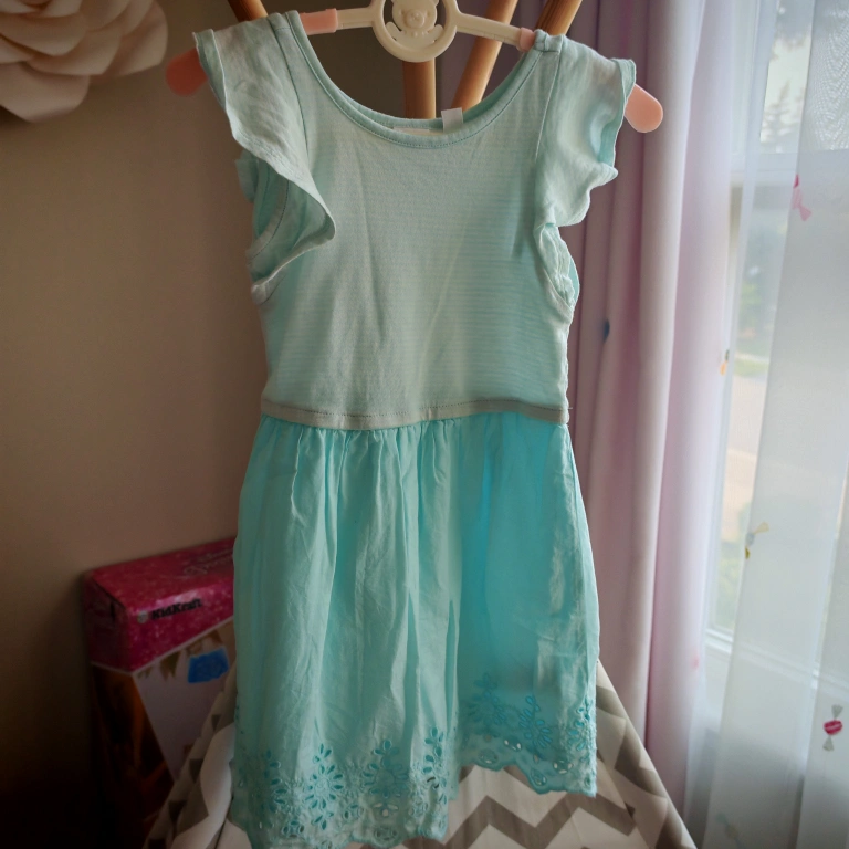 This adorable girls' dress from GAP is a lovely light blue colour and size XS. It features a cute embroidered hem and is perfect for spring or summer! It's in great condition and ready for a new home