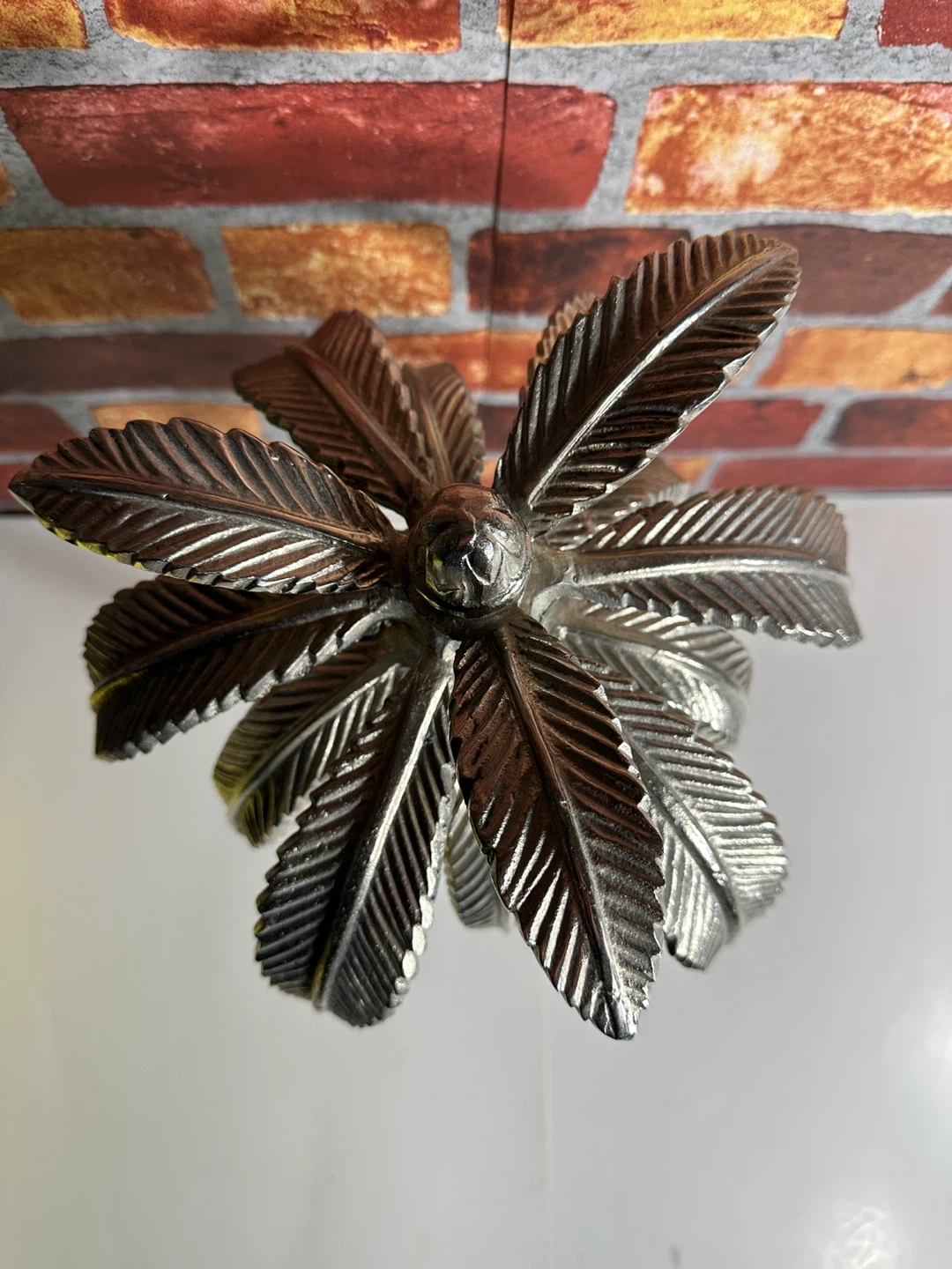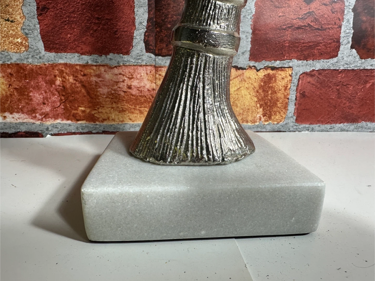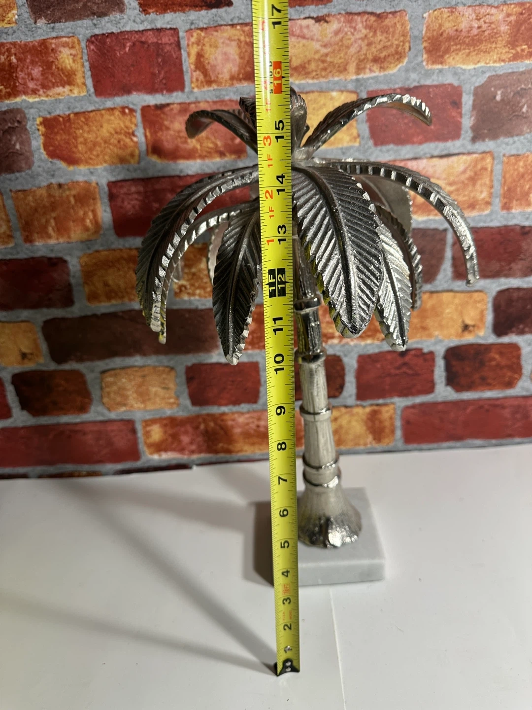 Silver Palm Tree Sculpture with Marble Base