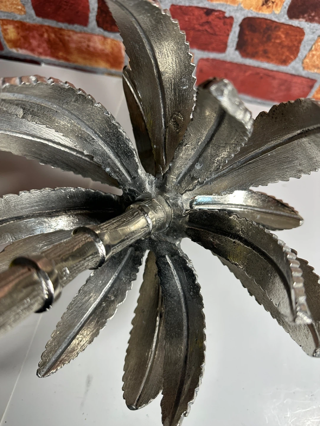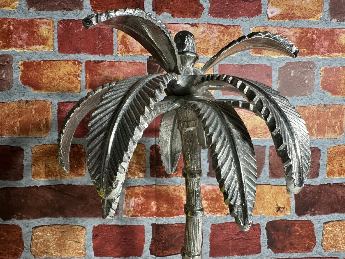 Silver Palm Tree Sculpture with Marble Base