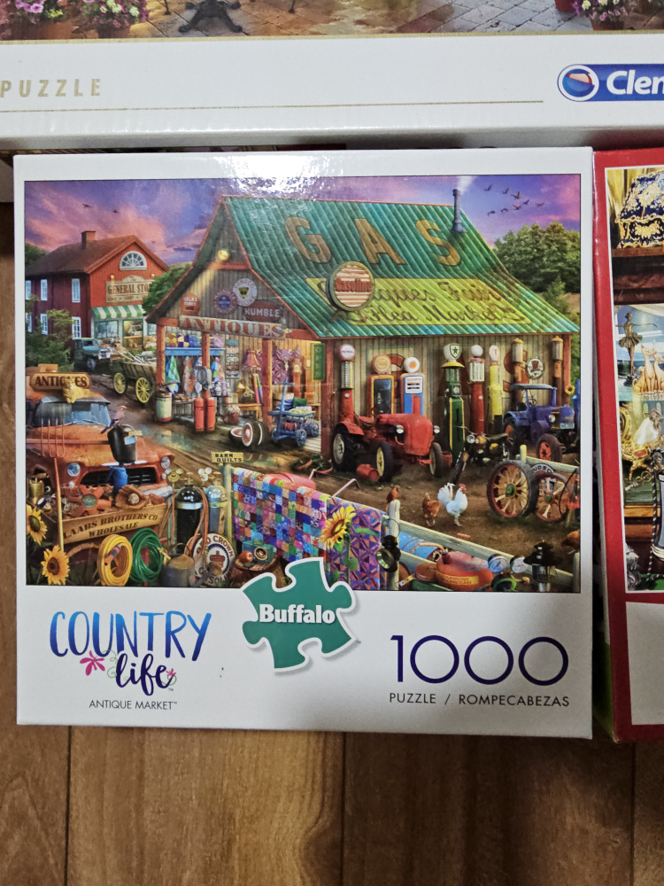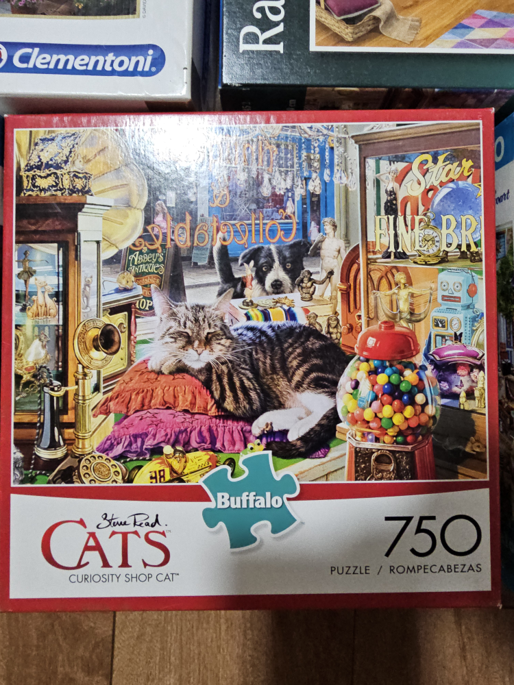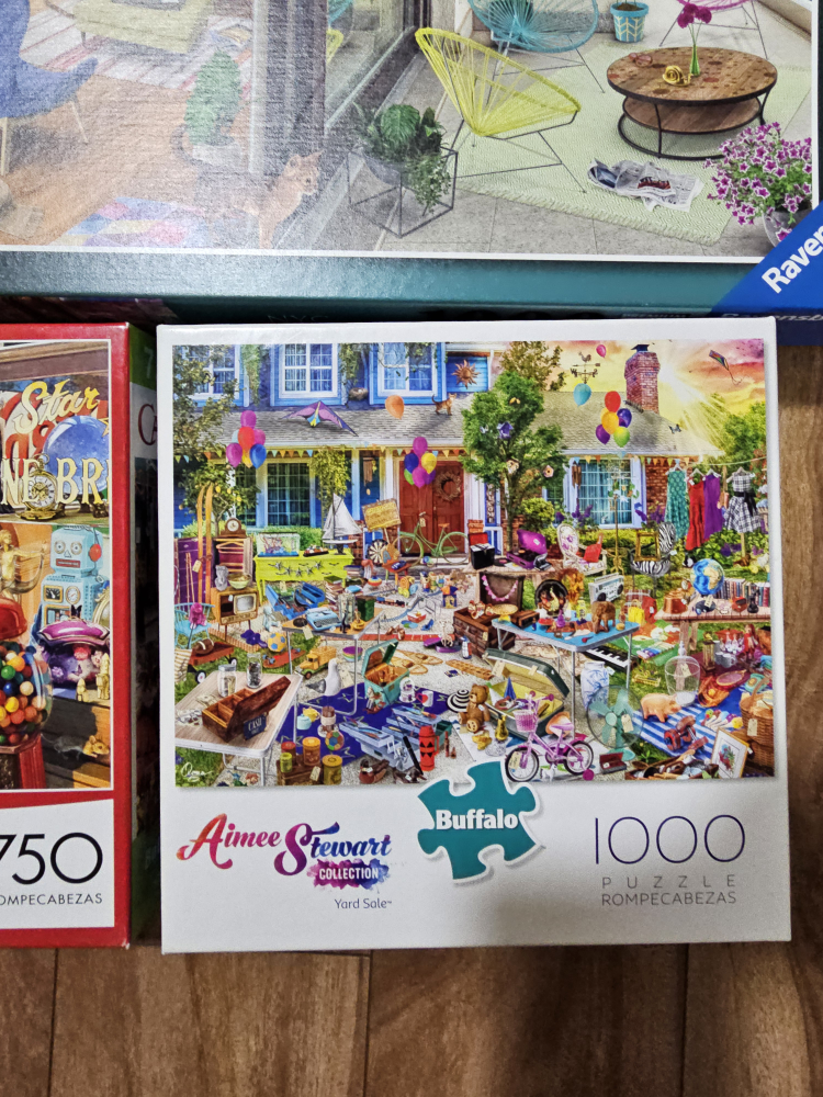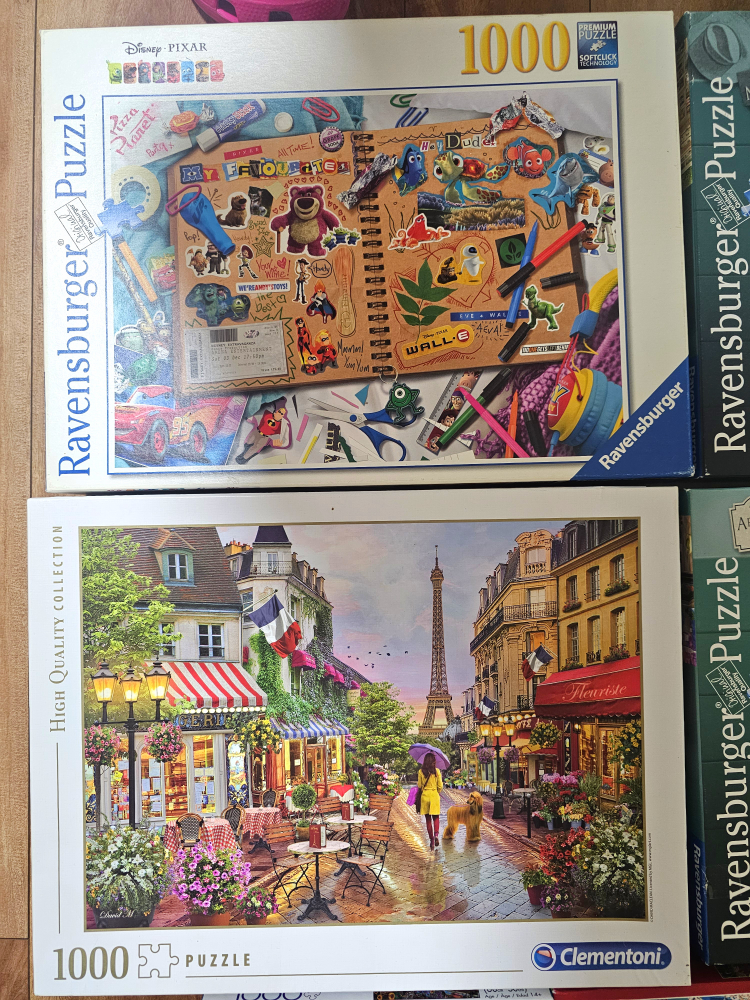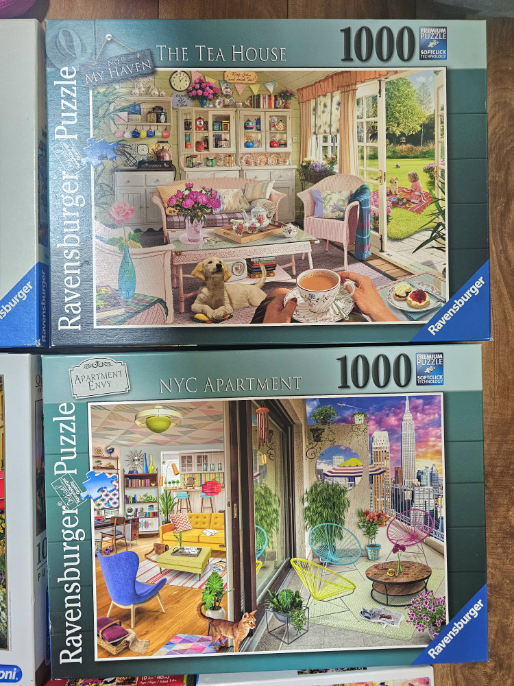 Selling a collection of jigsaw puzzles! There's a variety of brands including Ravensburger, Buffalo, and Clementoni. The puzzles range in piece count from 750 to 1000.
