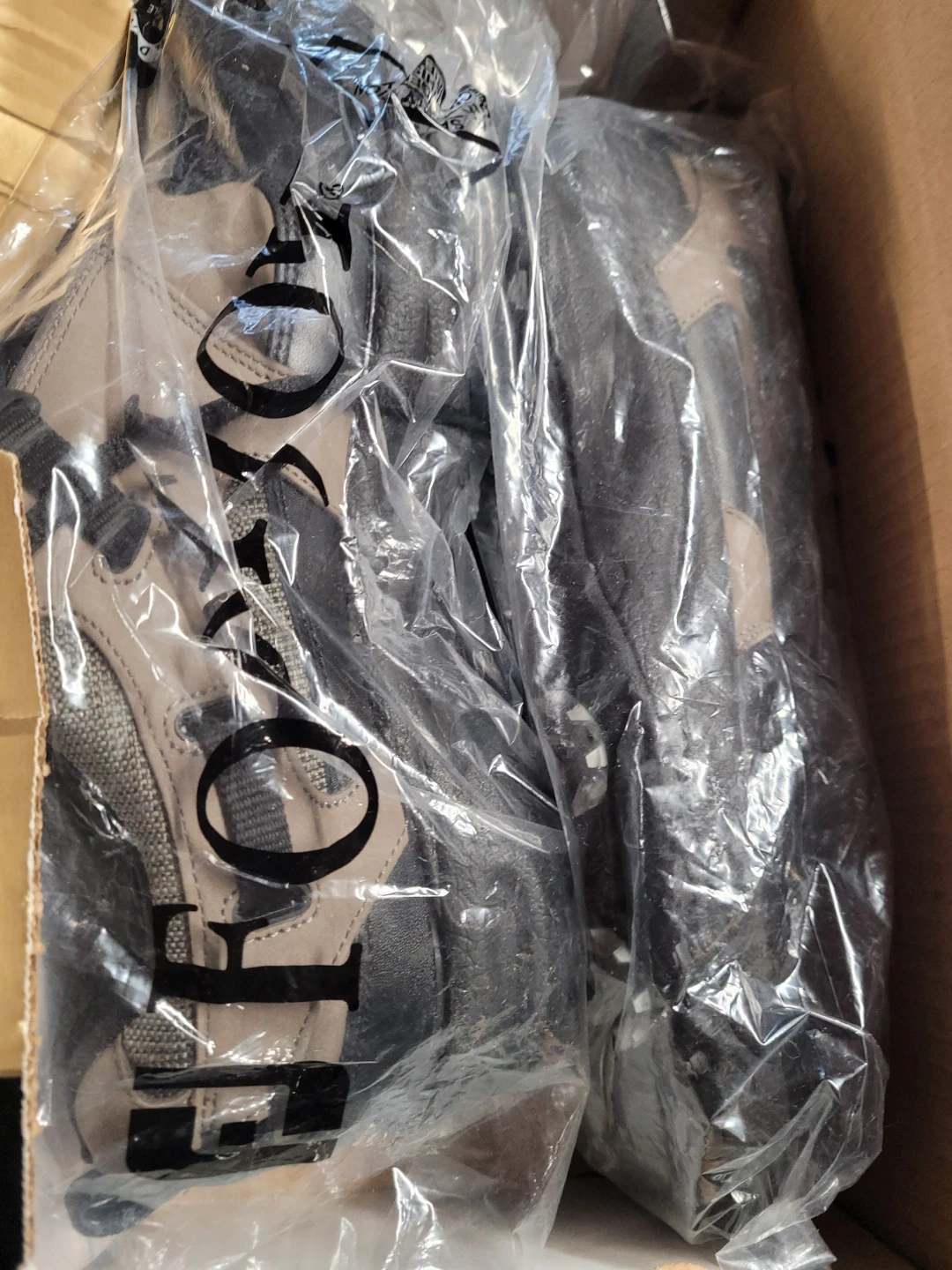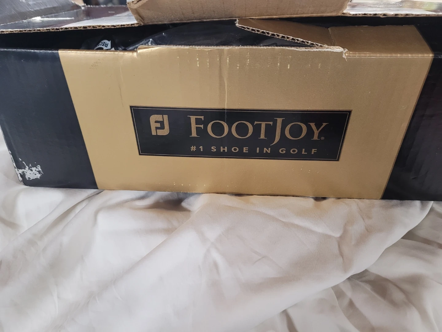 Never used. These FootJoy golf shoes have soft, full-grain leather uppers. They have custom-cushioned heel plugs for comfort and DuraMax rubber outsoles for greens-friendly traction. Perfect for your next round of golf!