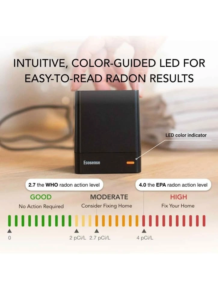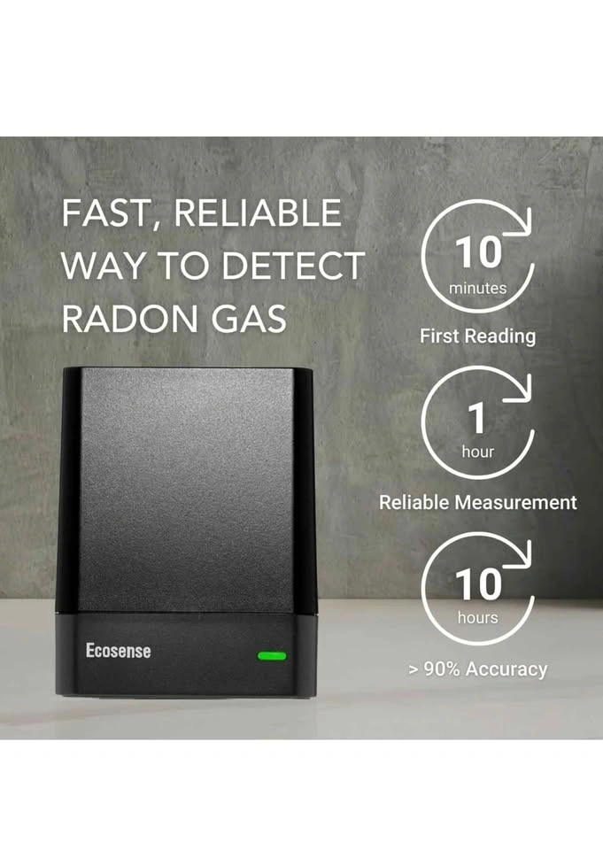 Reliable Ecosense EcoQube smart radon detector. Measures radon gas levels. Connects to an app for real-time data and alerts. Works with IFTTT for smart home automations. Fast first readings and accurate results. C-NRPP approved, Health Canada recommended. Keep your home safe.