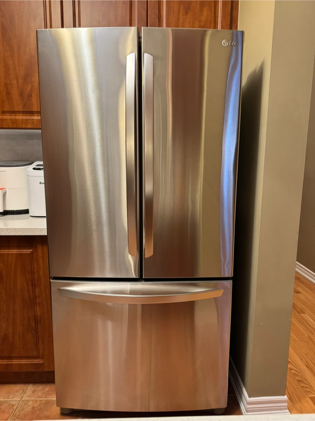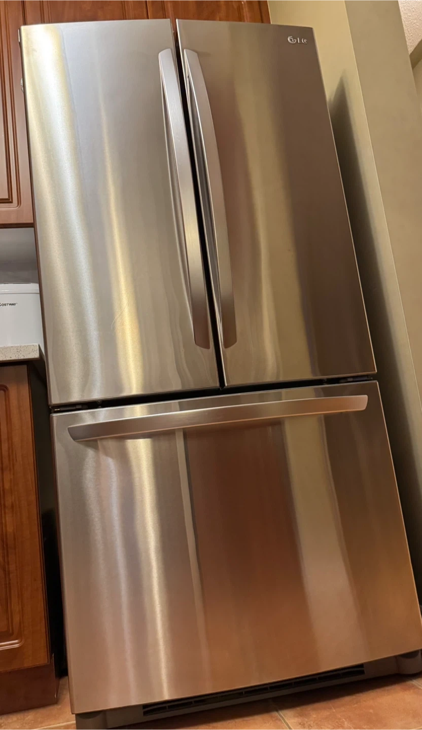 Selling an LG French door refrigerator in stainless steel. It's in great condition and ready to keep your groceries fresh! A stylish and functional addition to any kitchen