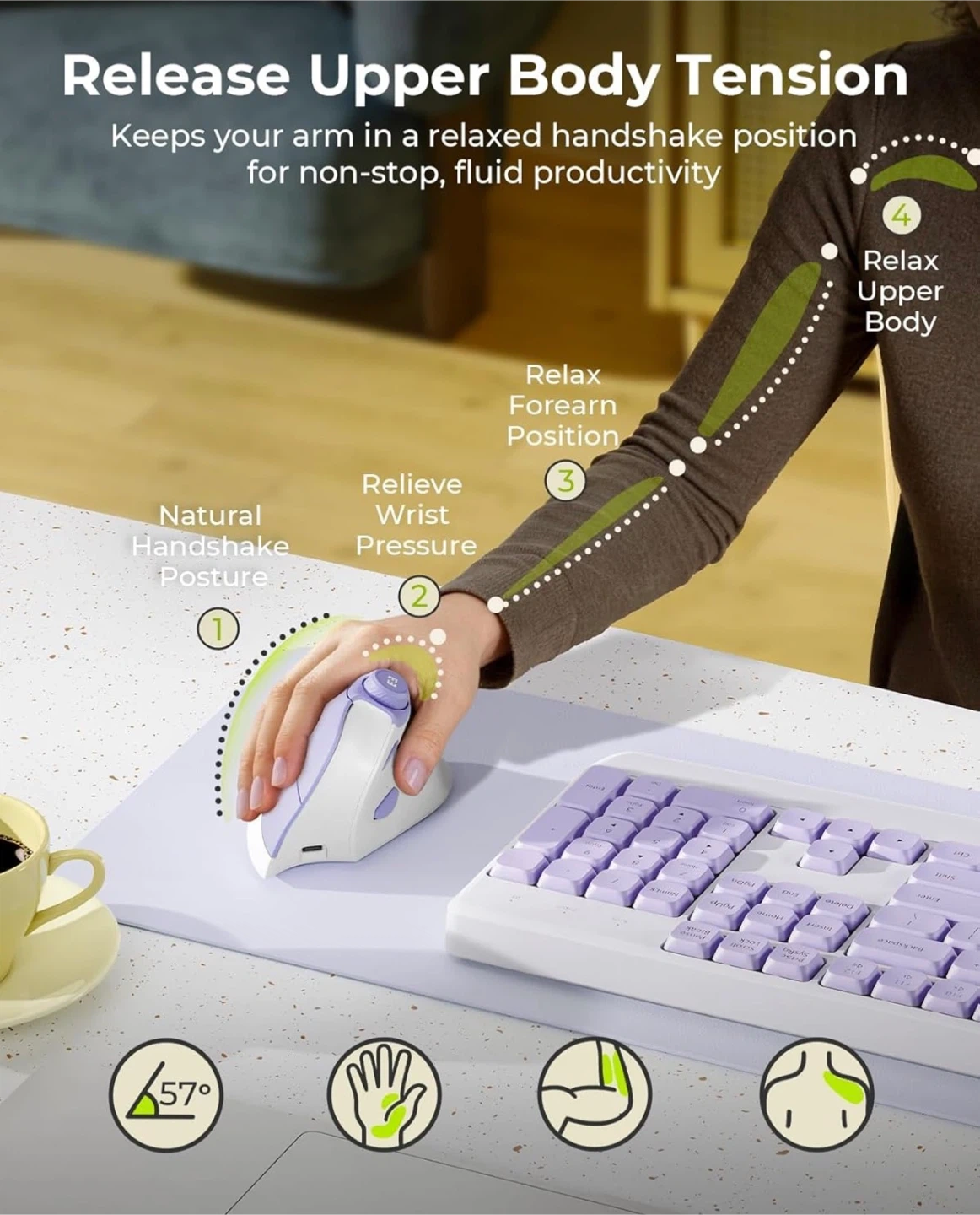 Seenda MOU-302 Multi-Device Ergonomic Mouse - White Purple