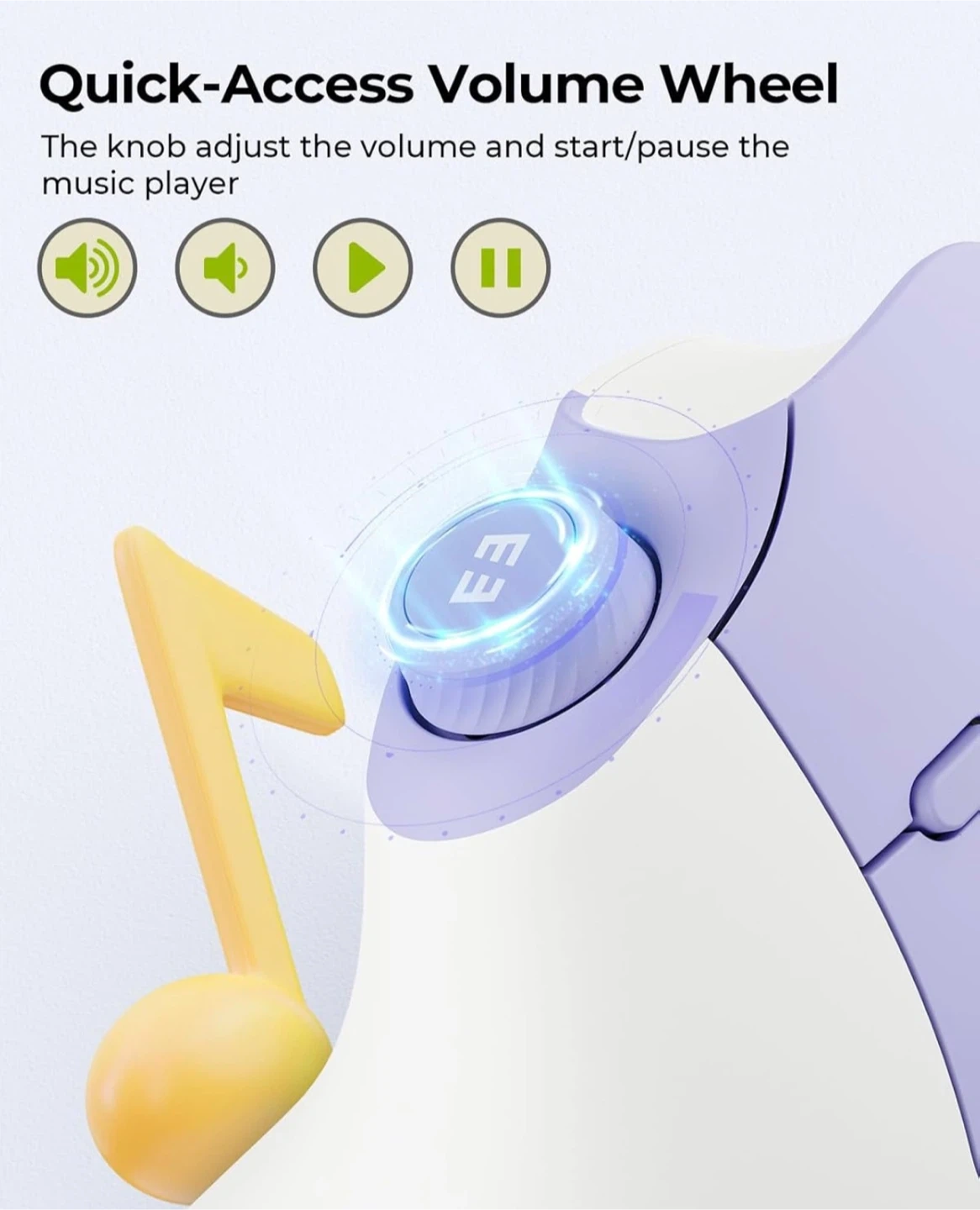 It's a Seenda MOU-302 ergonomic mouse in white and purple. Features 3-channel multi-OS connectivity and an independent volume control knob. The vertical design helps reduce wrist fatigue and muscle strain.