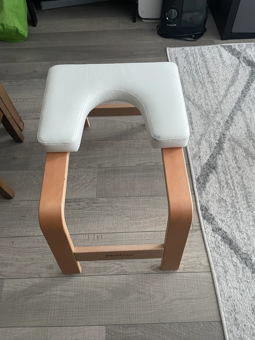 This is the original FeetUp trainer, designed for safe and stable headstands. It's crafted with a sturdy wooden frame and a comfortable white padded cushion. This trainer helps you achieve a proper headstand alignment and build confidence.