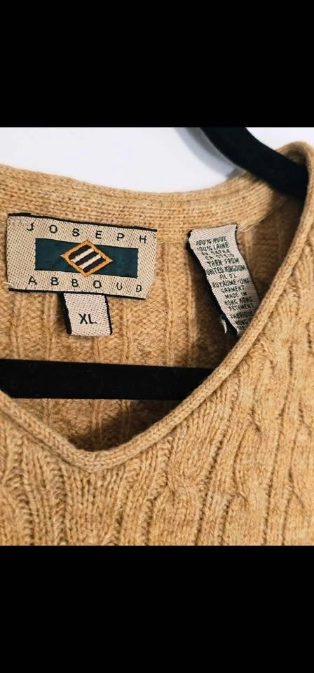 Warm and cozy vintage cable knit sweater vest, in a warm camel brown/ pale mustard yellow yellow color. Vest is made of 100% wool, by Joseph Abboud. A classic and sophisticated layering piece for cold weather days.