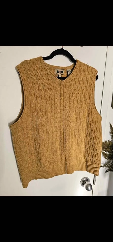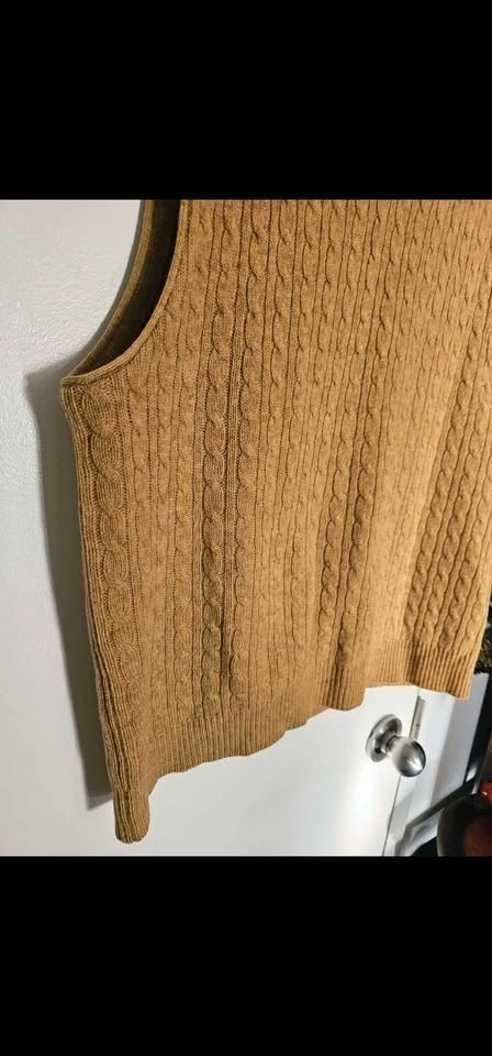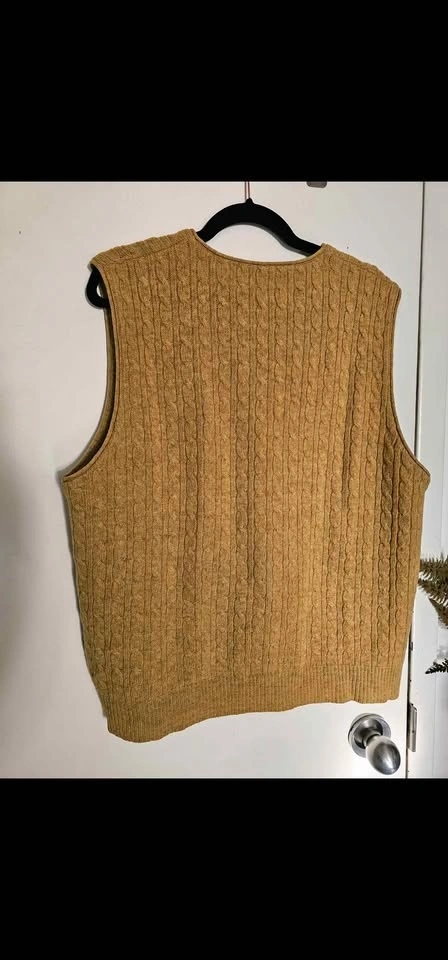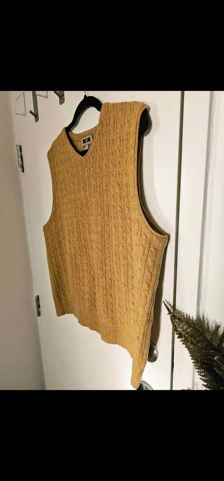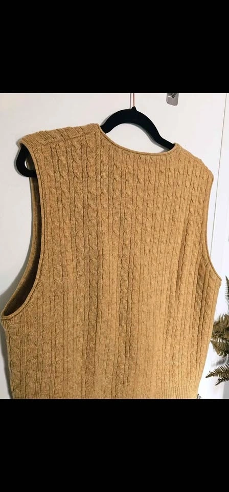 Mens XL 100% Wool Vintage Cable Knit Sweater Vest Camel Tan