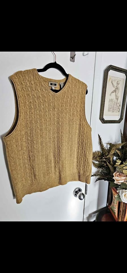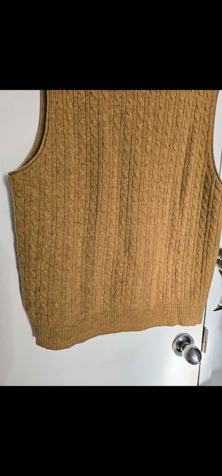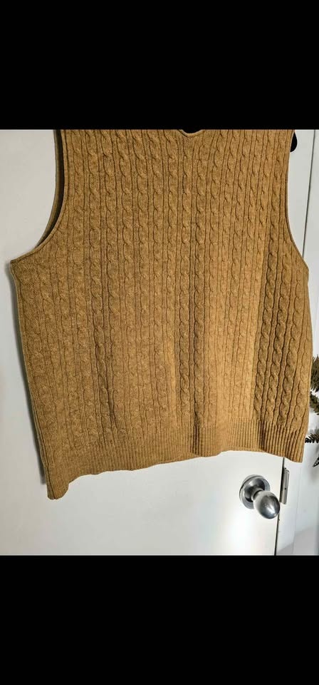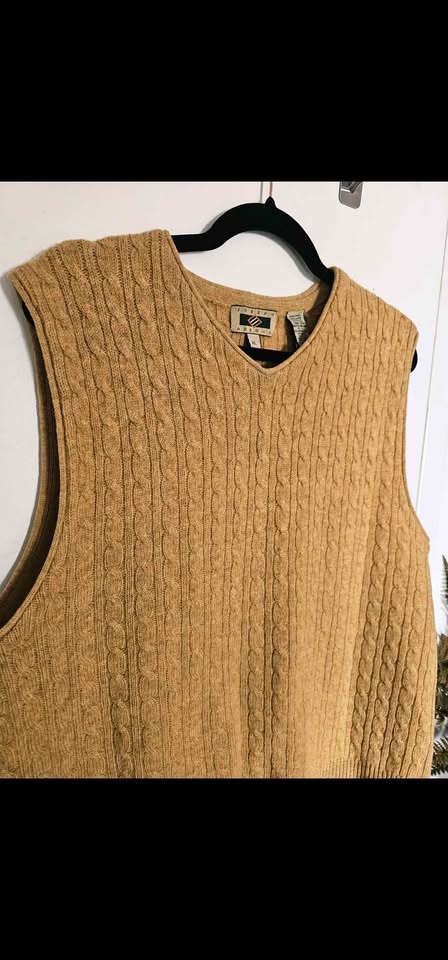 Mens XL 100% Wool Vintage Cable Knit Sweater Vest Camel Tan
