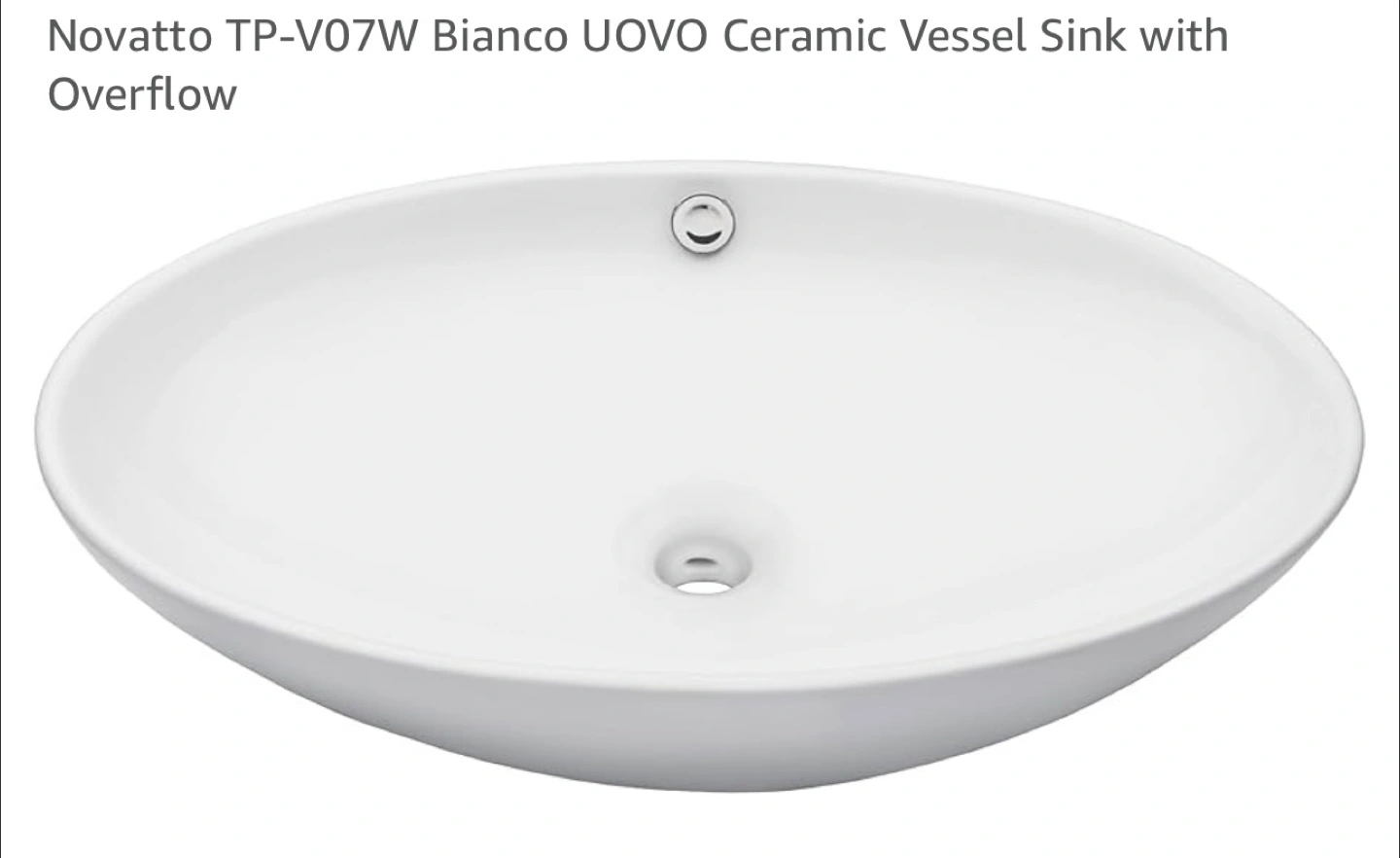 Novato TP-V07W Bianco UOVO Ceramic Vessel Sink with Overflow