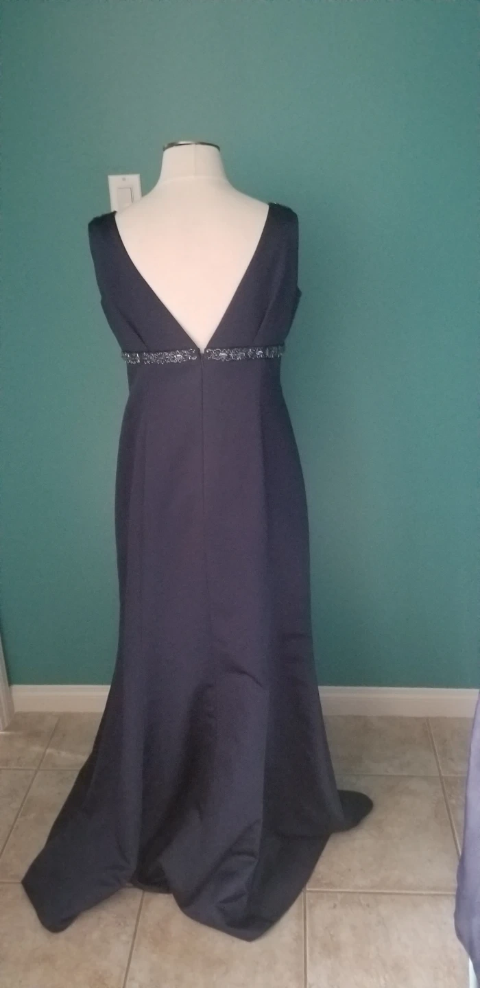 Blue dress, size 14 from David’s Bridal. Only worn once and comes with the scarf which can be worn with or without the dress.