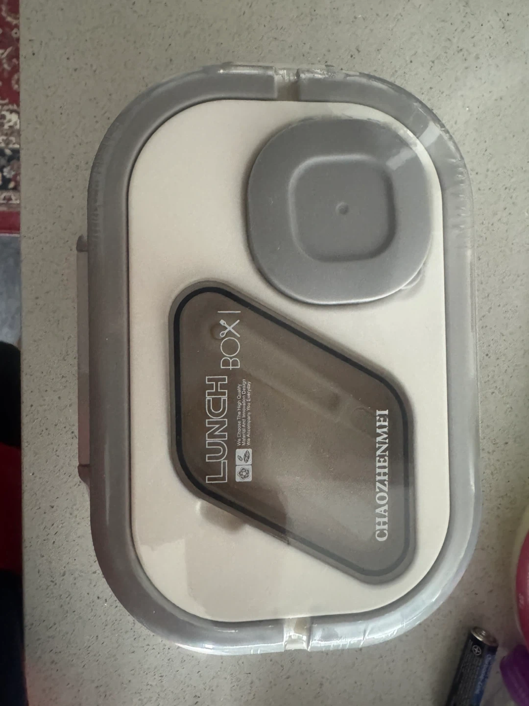 This is a Chaozhenmei lunch box with a grey and white design. It has a secure locking lid and internal compartments for food separation. It's suitable for packing meals for work or school.