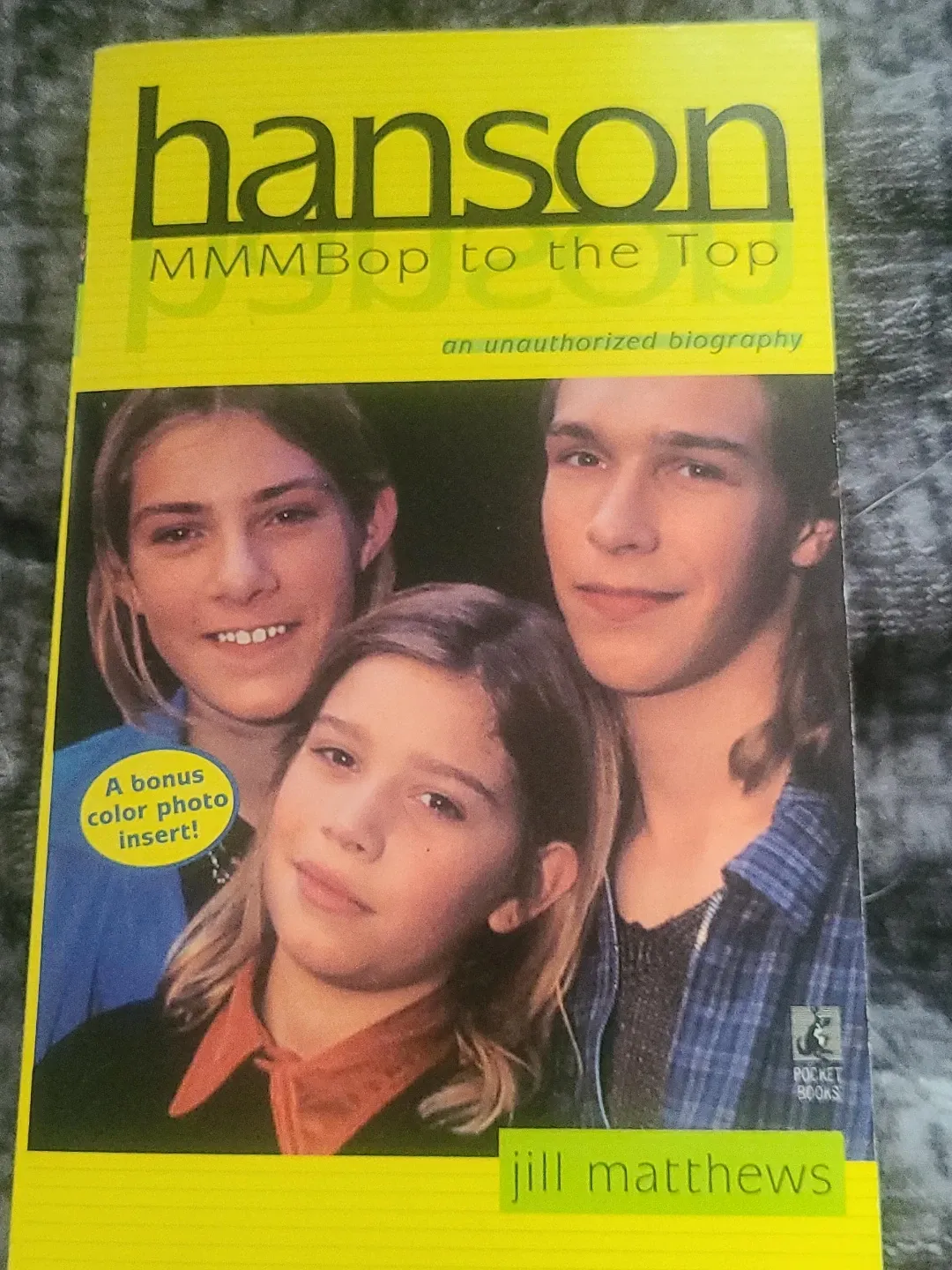 An unauthorized biography of the band Hanson, titled "MMMBop to the Top". It's written by Jill Matthews and includes a bonus color photo insert. Pocket Books.