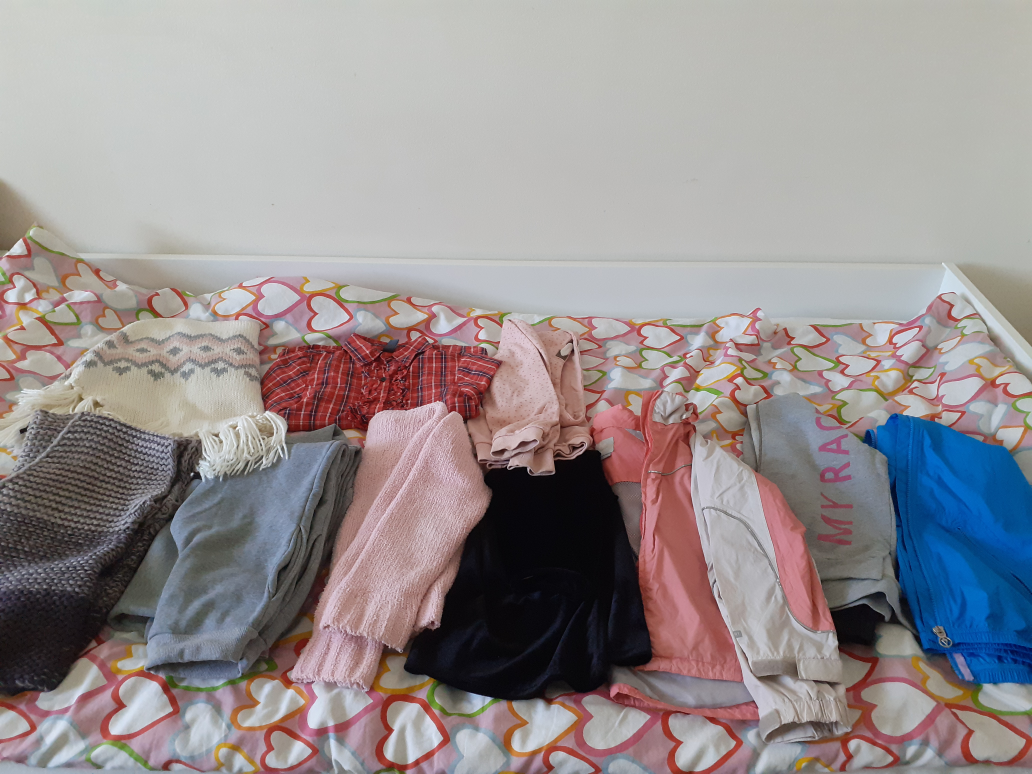 Free. Bundle of assorted 7-8yo girl's' clothing. Includes a variety of items like a shirt, hoody, wind breaker, dress, sweater and pants.