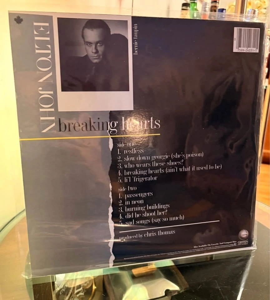 1984 Elton John vinyl album “Breaking Hearts”. Excellent copy.