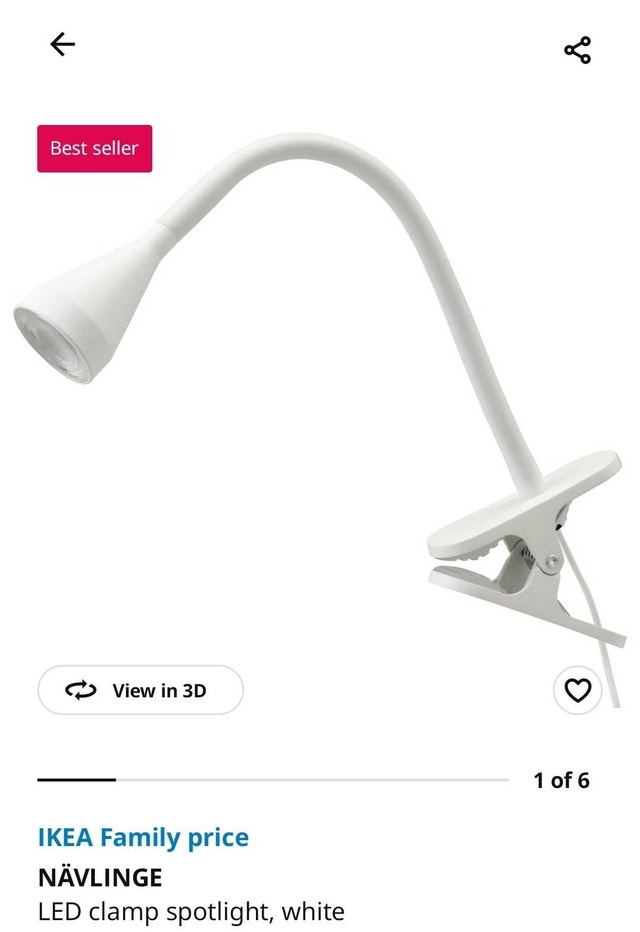 Illuminate your space with this white Ikea Navlinge LED clamp spotlight, perfect for desks, bedside tables, or anywhere you need focused light. This used lamp is in good condition and ready to brighten your day. Specifications:
