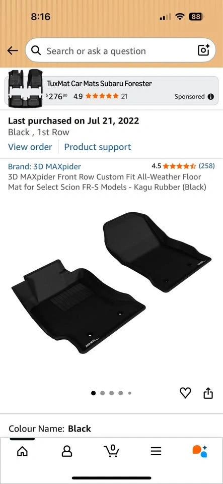 Brand new, never used 1st row floor mats for Scion FR-S by 3D MAXpider. Originally purchased on Amazon for $146, selling as we no longer have an FRS. Cash pick up only in Scarborough at Birchmount and St Clair or STC.