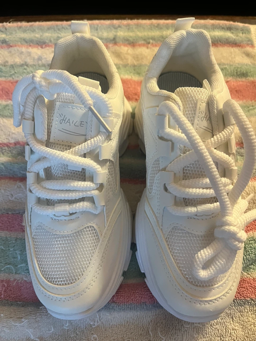 These white HAILEY sneakers are a size 36. They feature a lace-up closure and a sturdy sole. Perfect for everyday wear!