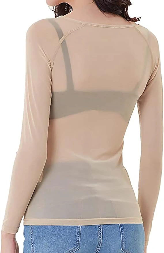 NEW Women's Small Apricot Sheer Tops Long Sleeve Mesh Blouse