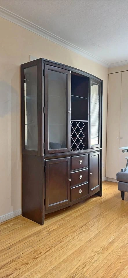 Dark Wood Wine Bar Hutch with Glass Display