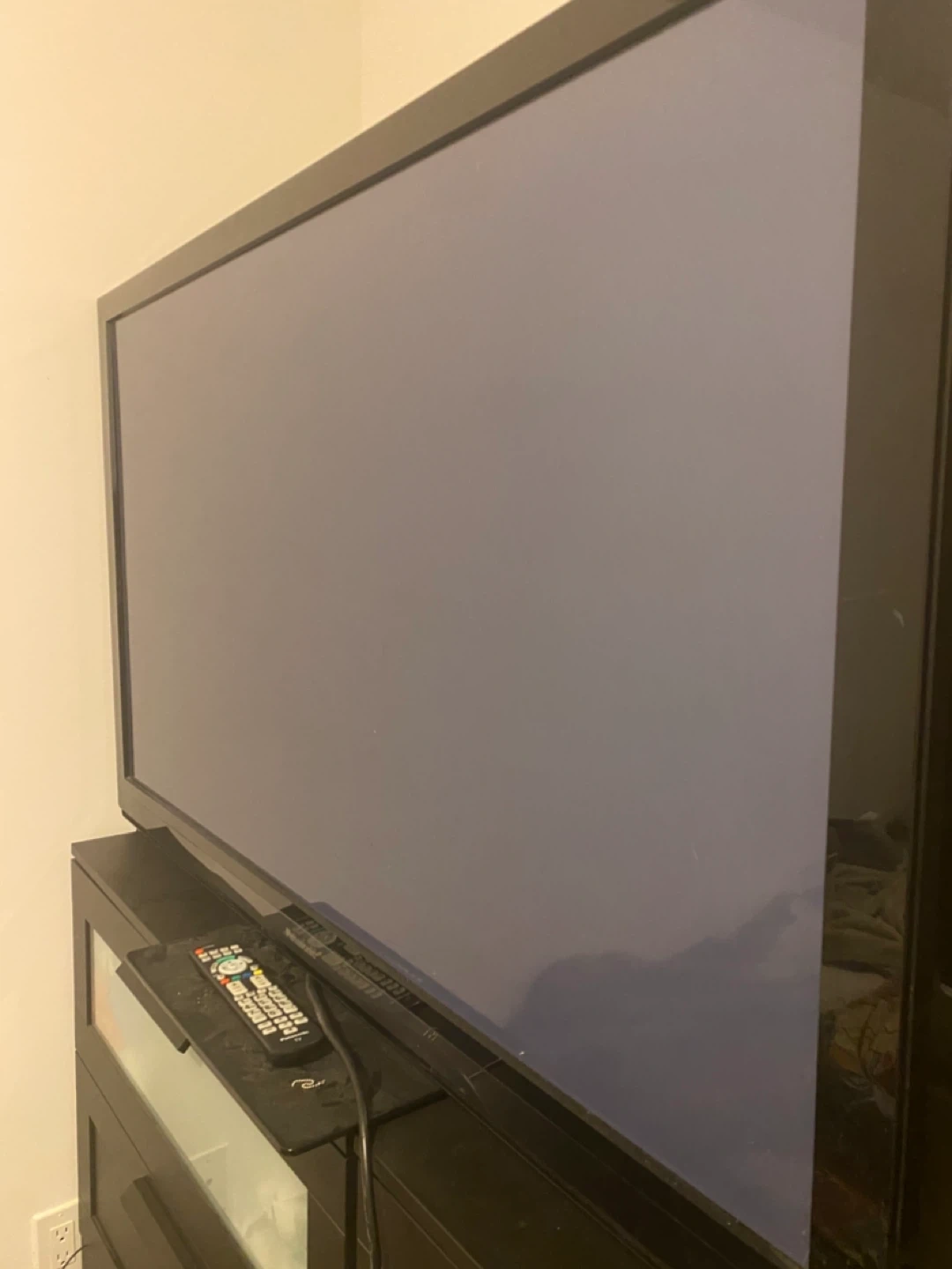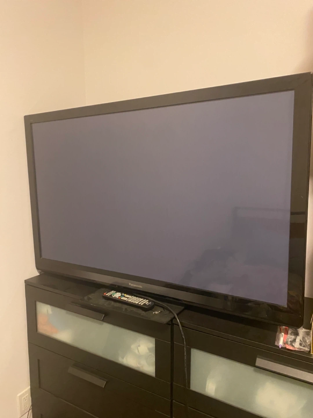 This is a Panasonic flat screen television. It's a good size for a living room or bedroom. 47” Comes with a remote but is tapped, clip broken. See photo