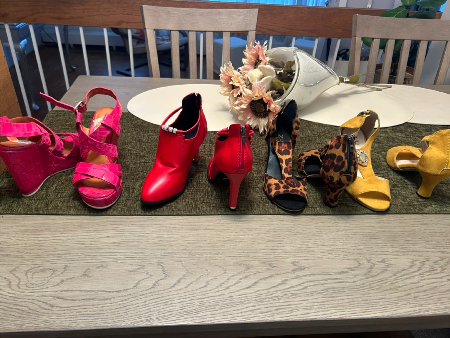 Beautiful shoes size 5 , price between 35 to 25.Best offers for the price range taken. Some of them ate new and the pink ones used like new