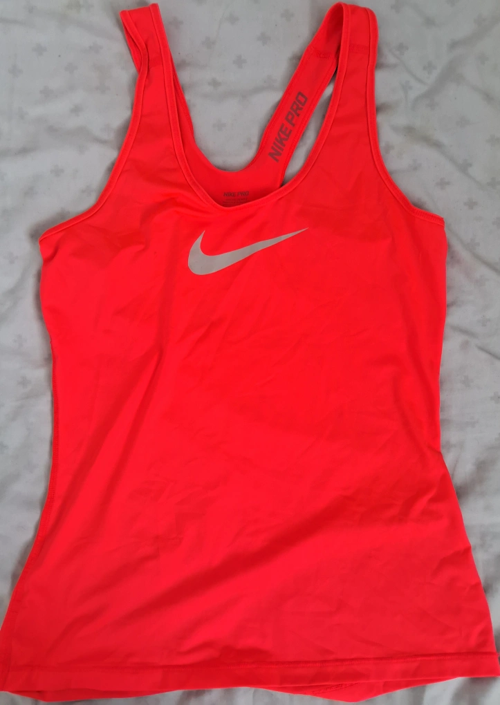 Bright orange athletic tank top. Racerback style. Nike Pro branding. Great for workouts.