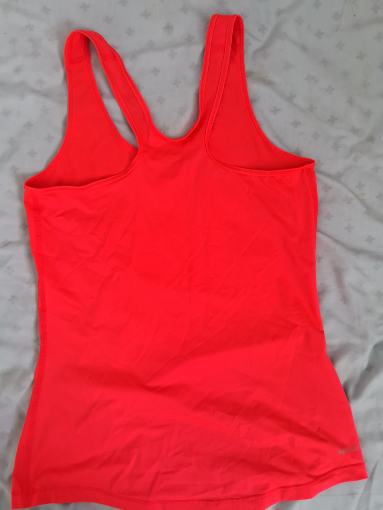 Bright orange athletic tank top. Racerback style. Nike Pro branding. Great for workouts.