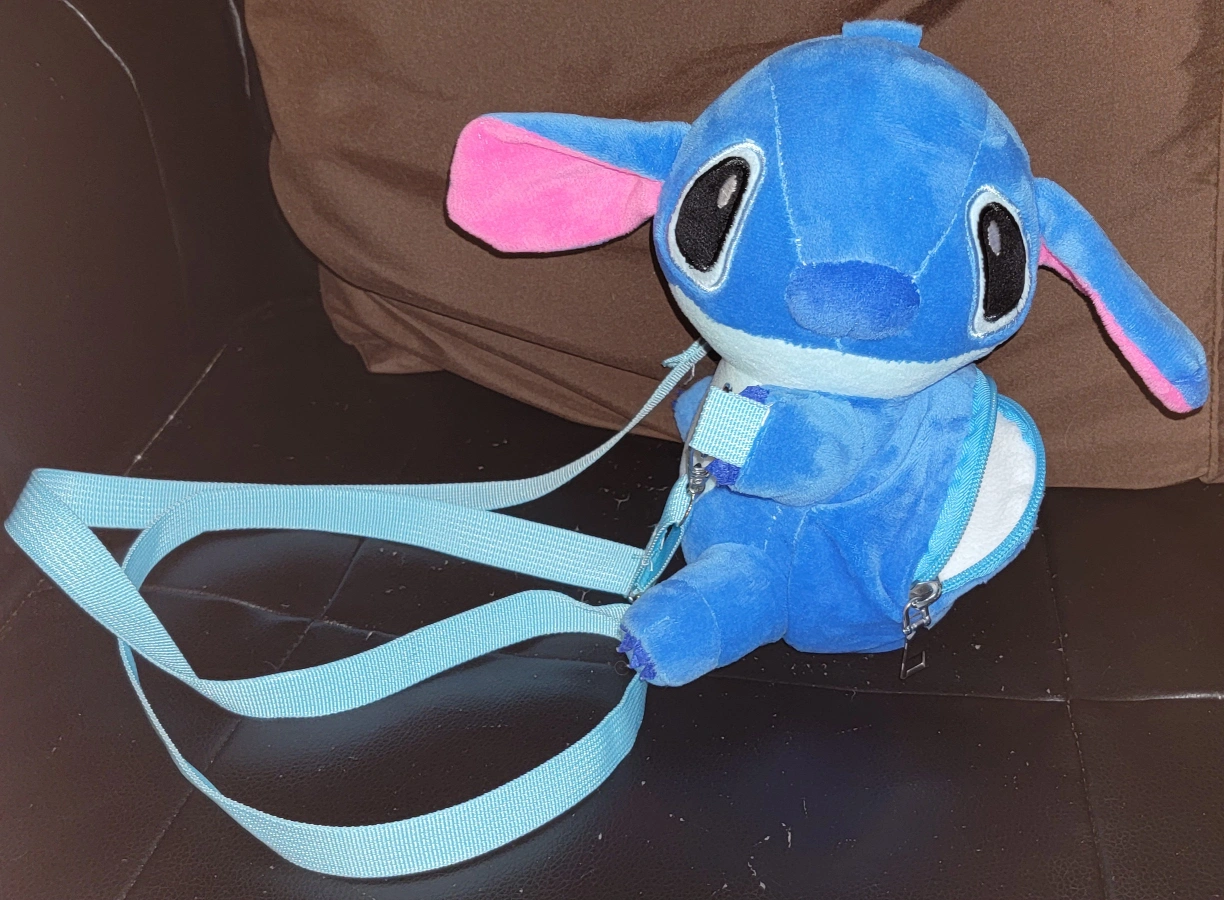 Cute Stitch plush purse from Disney's Lilo & Stitch. Only worn once or twice so it's in excellent condition. Stitch sits approx 8 inches tall and has an adjustable strap that goes quite long. Perfect for holding small things like cash, debit/credit cards, chapstick, makeup, etc.